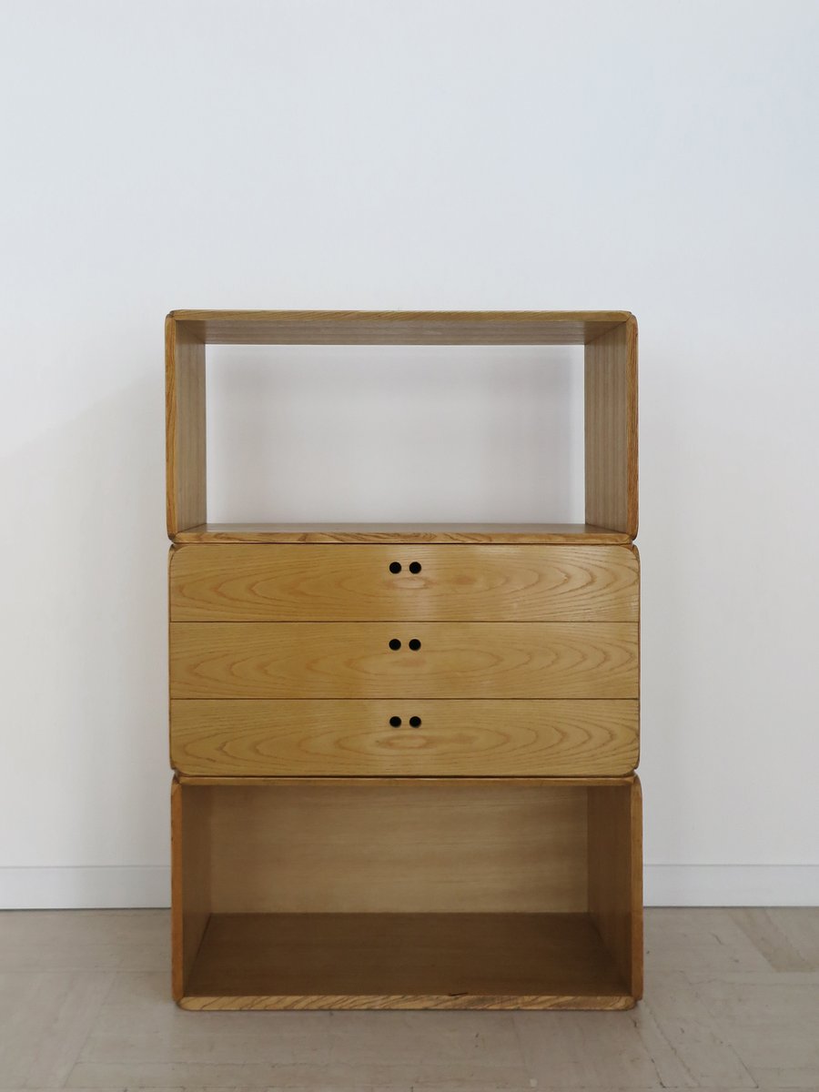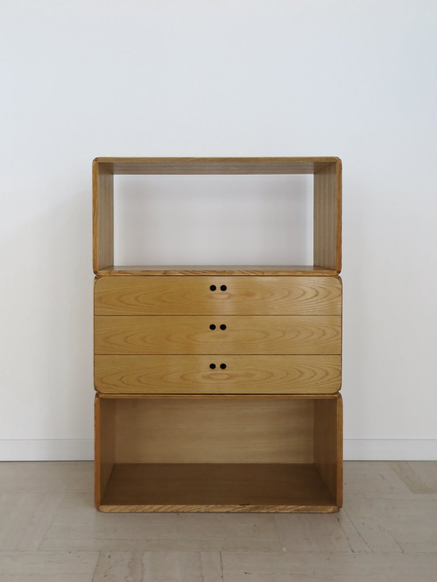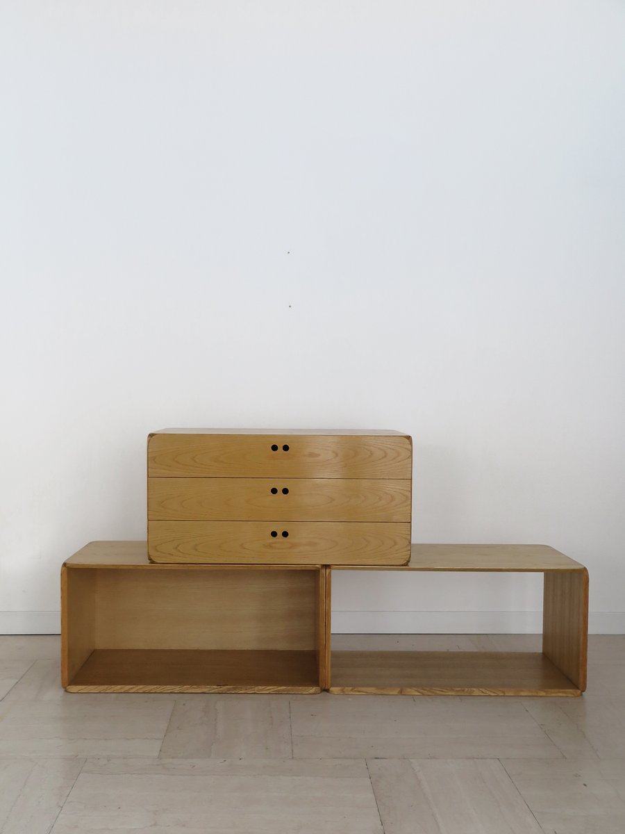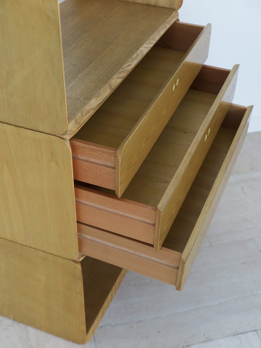 Libreria modulare serie Samara in frassino di Derk Jan De Vries per Maisa, Italia, anni '70
