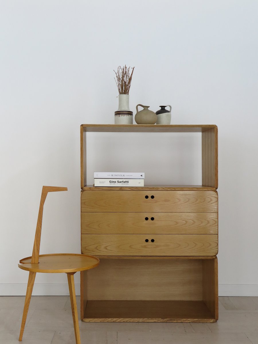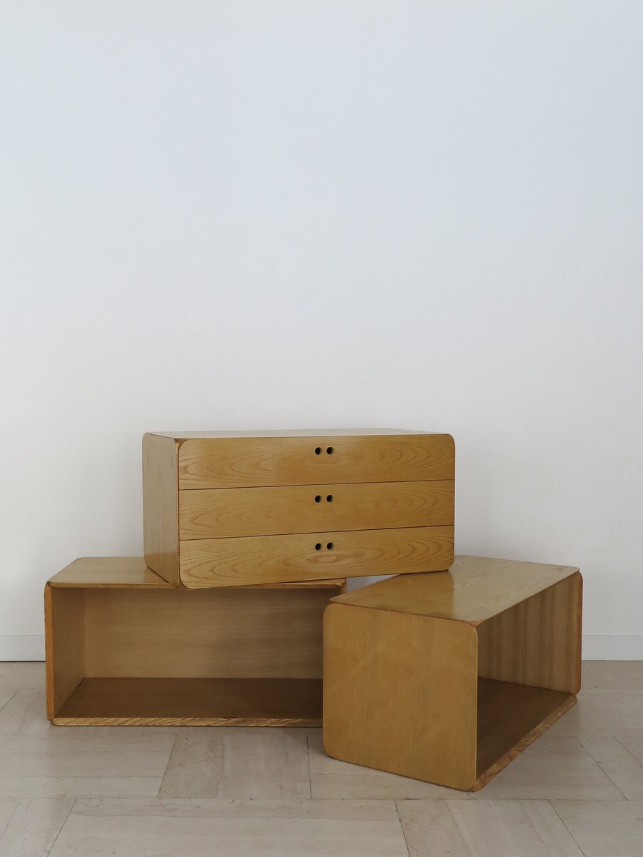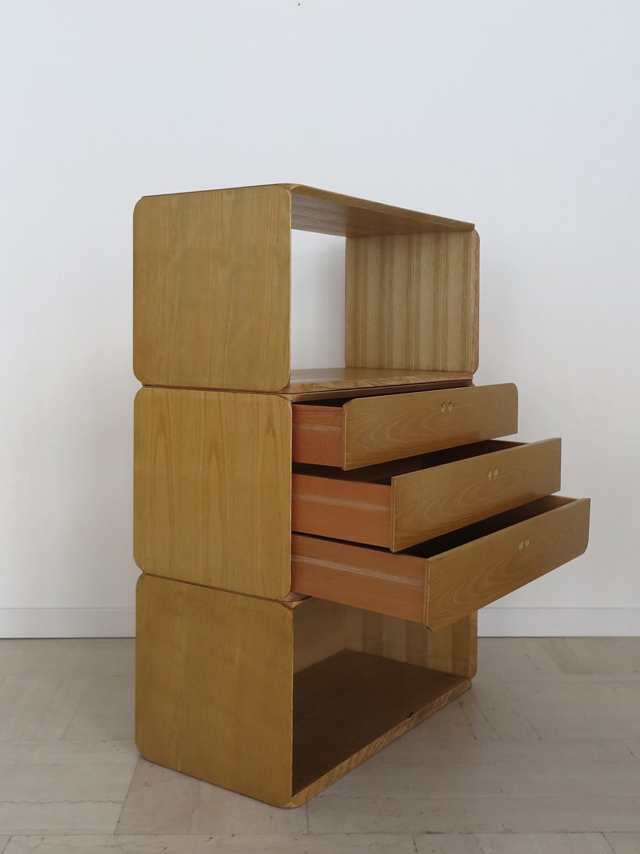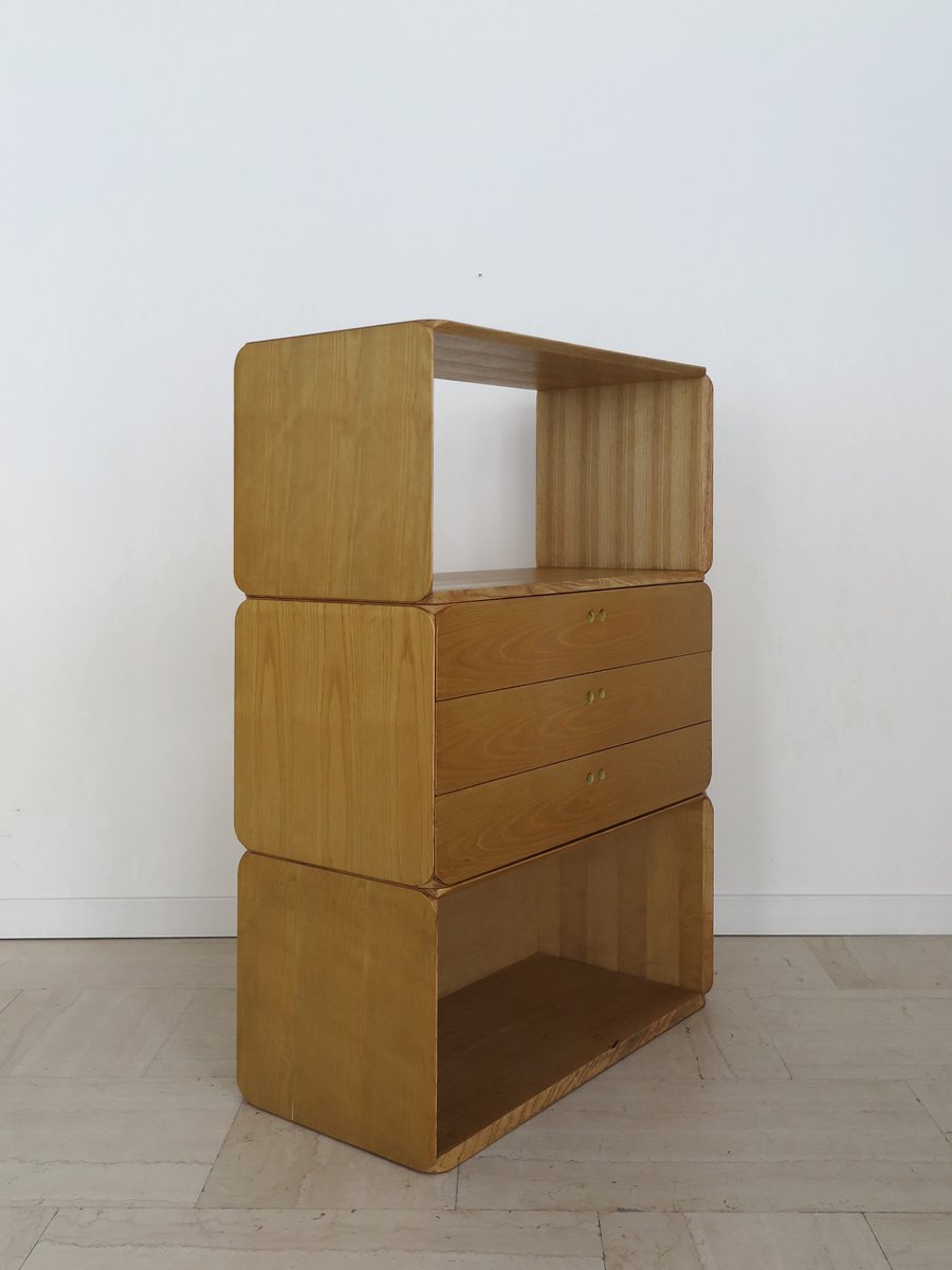 Libreria modulare serie Samara in frassino di Derk Jan De Vries per Maisa, Italia, anni '70