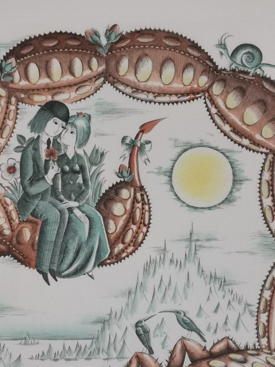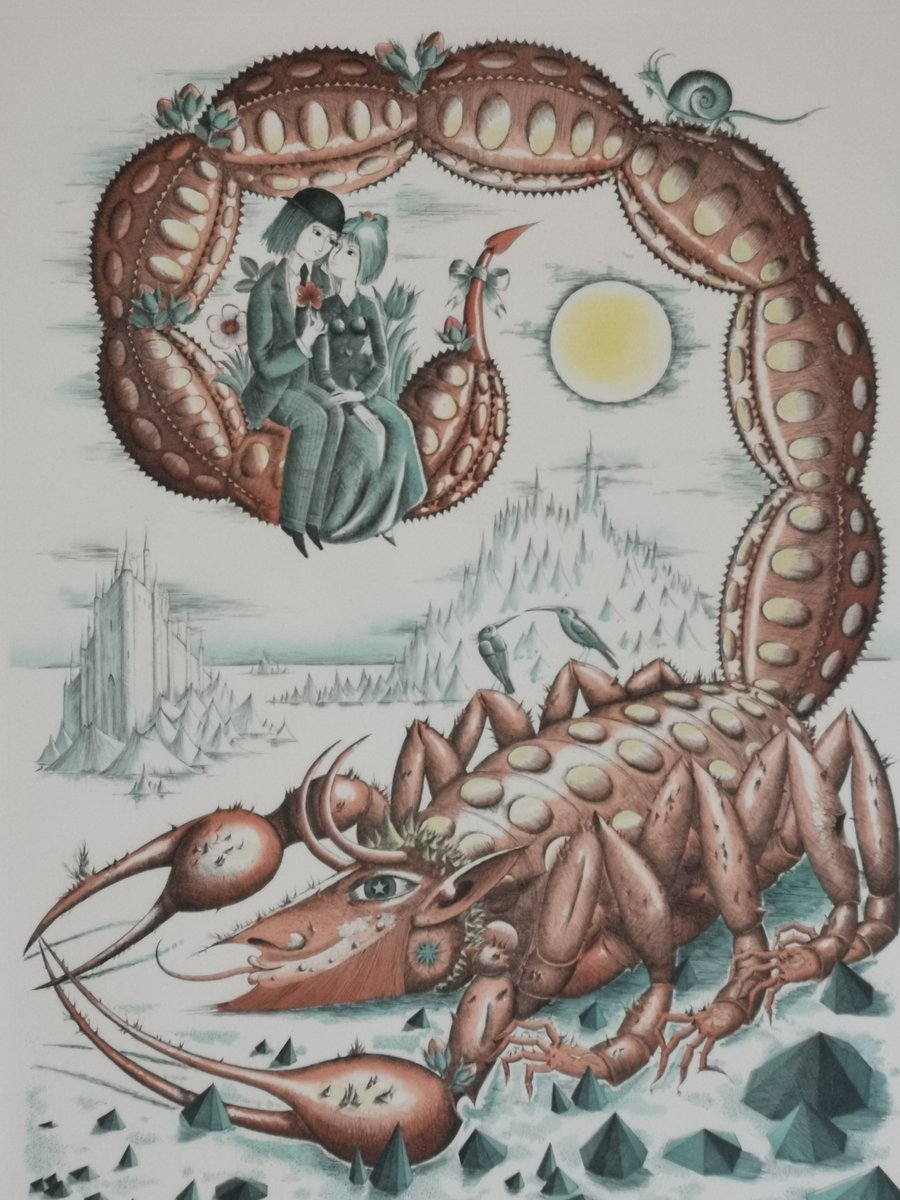 Painting The lovers of Raymond PEYNET "the signs of the zodiac": The Scorpion