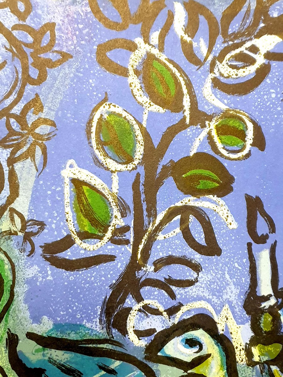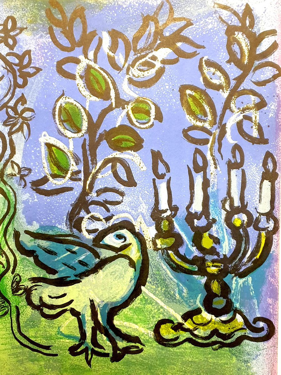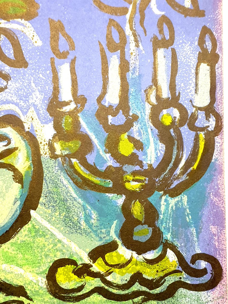 Marc Chagall - The Candlestick - Original Lithograph 1962 Printed by Mourlot Dimensions: 32.5 x 24.5 cm Publisher: André Sauret, Monte-Carlo Reference: Mourlot n° 366 Marc Chagall (born in 1887) Marc Chagall was born in Belarus in 1887 and developed an early interest in art. After studying painting, in 1907 he left Russia for Paris, where he lived in an artist colony on the city’s outskirts. Fusing his own personal, dreamlike imagery with hints of the fauvism and cubism popular in France at the time, Chagall created his most lasting work—including I and the Village (1911)—some of which would be featured in the Salon des Indépendants exhibitions. After returning to Vitebsk for a visit in 1914, the outbreak of WWI trapped Chagall in Russia. He returned to France in 1923 but was forced to flee the country and Nazi persecution during WWII. Finding asylum in the U.S., Chagall became involved in set and costume design before returning to France in 1948. In his later years, he experimented with new art forms and was commissioned to produce numerous large-scale works. Chagall died in St.-Paul-de-Vence in 1985. The Village Marc Chagall was born in a small Hassidic community on the outskirts of Vitebsk, Belarus, on July 7, 1887. His father was a fishmonger, and his mother ran a small sundries shop in the village. As a child, Chagall attended the Jewish elementary school, where he studied Hebrew and the Bible, before later attending the Russian public school. He began to learn the fundamentals of drawing during this time, but perhaps more importantly, he absorbed the world around him, storing away the imagery and themes that would feature largely in most of his later work. At age 19 Chagall enrolled at a private, all-Jewish art school and began his formal education in painting, studying briefly with portrait artist Yehuda Pen. However, he left the school after several months, moving to St. Petersburg in 1907 to study at the Imperial Society for the Protection of Fine Arts. The following year, he enrolled at the Svanseva School, studying with set designer Léon Bakst, whose work had been featured in Sergei Diaghilev's Ballets Russes. This early experience would prove important to Chagall’s later career as well. Despite this formal instruction, and the widespread popularity of realism in Russia at the time, Chagall was already establishing his own personal style, which featured a more dreamlike unreality and the people, places and imagery that were close to his heart. Some examples from this period are his Window Vitebsk (1908) and My Fianceé with Black Gloves (1909), which pictured Bella Rosenfeld, to whom he had recently become engaged. The Beehive Despite his romance with Bella, in 1911 an allowance from Russian parliament member and art patron Maxim Binaver enabled Chagall to move to Paris, France. After settling briefly in the Montparnasse neighborhood, Chagall moved further afield to an artist colony known as La Ruche (“The Beehive”), where he began to work side by side with abstract painters such as Amedeo Modigliani and Fernand Léger as well as the avant-garde poet Guillaume Apollinaire. At their urging, and under the influence of the wildly popular fauvism and cubism, Chagall lightened his palette and pushed his style ever further from reality. I and the Village (1911) and Homage to Apollinaire (1912) are among his early Parisian works, widely considered to be his most successful and representative period. Though his work stood stylistically apart from his cubist contemporaries, from 1912 to 1914 Chagall exhibited several paintings at the annual Salon des Indépendants exhibition, where works by the likes of Juan Gris, Marcel Duchamp and Robert Delaunay were causing a stir in the Paris art world. Chagall’s popularity began to spread beyond La Ruche, and in May 1914 he traveled to Berlin to help organize his first solo exhibition, at Der Sturm Gallery. Chagall remained in the city until the highly acclaimed show opened that June. He then returned to Vitebsk, unaware of the fateful events to come. War, Peace and Revolution In August 1914 the outbreak of World War I precluded Chagall’s plans to return to Paris. The conflict did little to stem the flow of his creative output, however, instead merely giving him direct access to the childhood scenes so essential to his work, as seen in paintings such as Jew in Green (1914) and Over Vitebsk (1914). His paintings from this period also occasionally featured images of the war’s impact on the region, as with Wounded Soldier (1914) and Marching (1915). But despite the hardships of life during wartime, this would also prove to be a joyful period for Chagall. In July 1915 he married Bella, and she gave birth to a daughter, Ida, the following year. Their appearance in works such as Birthday (1915), Bella and Ida by the Window (1917) and several of his “Lovers” paintings give a glimpse of the island of domestic bliss that was Chagall’s amidst the chaos. To avoid military service and stay with his new family, Chagall took a position as a clerk in the Ministry of War Economy in St. Petersburg. While there he began work on his autobiography and also immersed himself in the local art scene, befriending novelist Boris Pasternak, among others. He also exhibited his work in the city and soon gained considerable recognition. That notoriety would prove important in the aftermath of the 1917 Russian Revolution when he was appointed as the Commissar of Fine Arts in Vitebsk. In his new post, Chagall undertook various projects in the region, including the 1919 founding of the Academy of the Arts. Despite these endeavors, differences among his colleagues eventually disillusioned Chagall. In 1920 he relinquished his position and moved his family to Moscow, the post-revolution capital of Russia. In Moscow, Chagall was soon commissioned to create sets and costumes for various productions at the Moscow State Yiddish Theater, where he would paint 