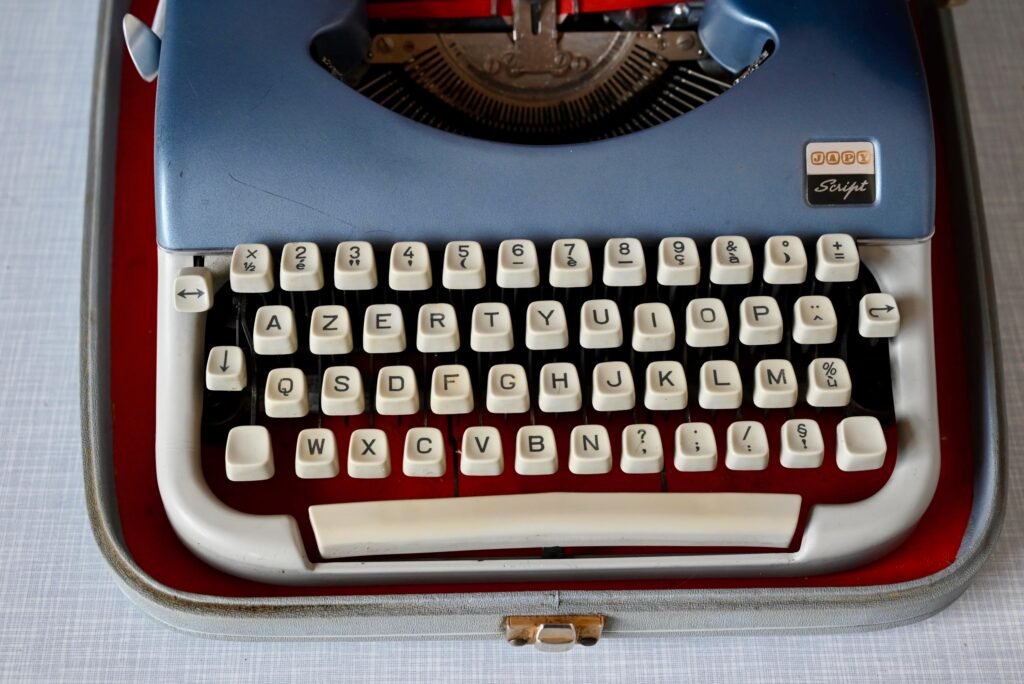 Typewriter vintage retro 60s child antic typewriter kid toy seventies french deco workshop belle lurette