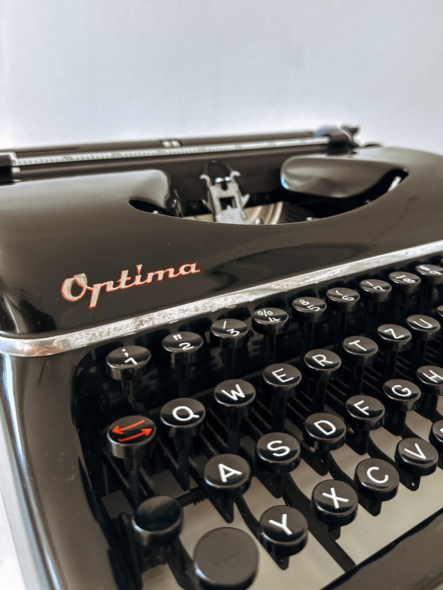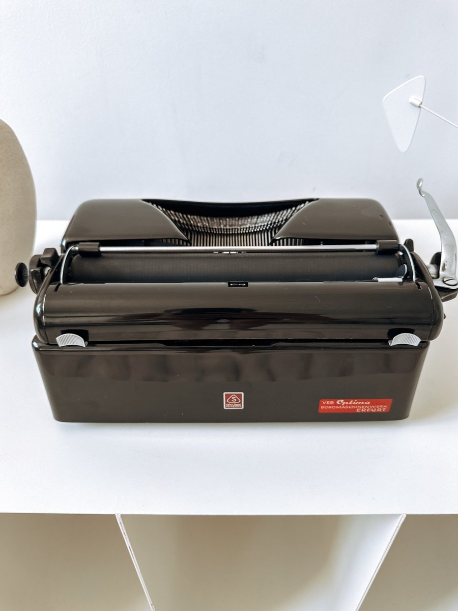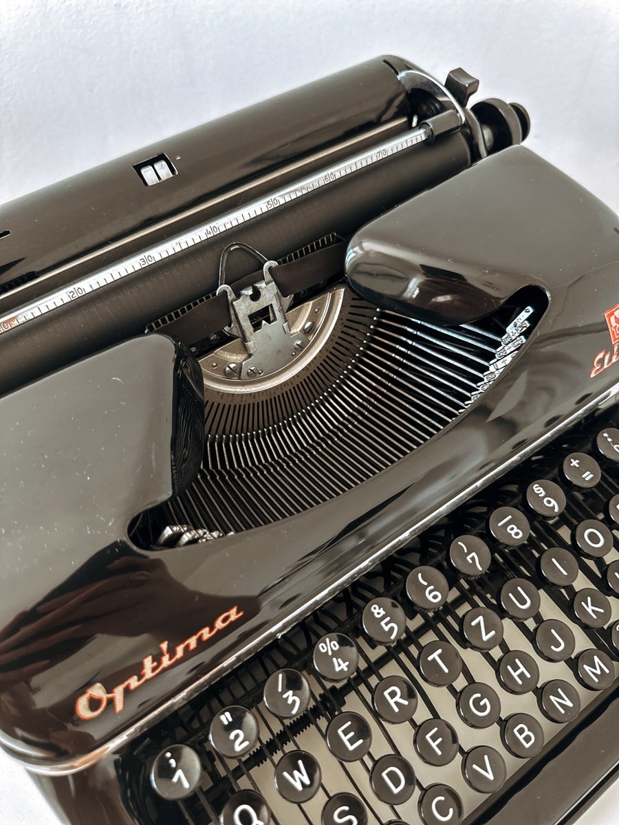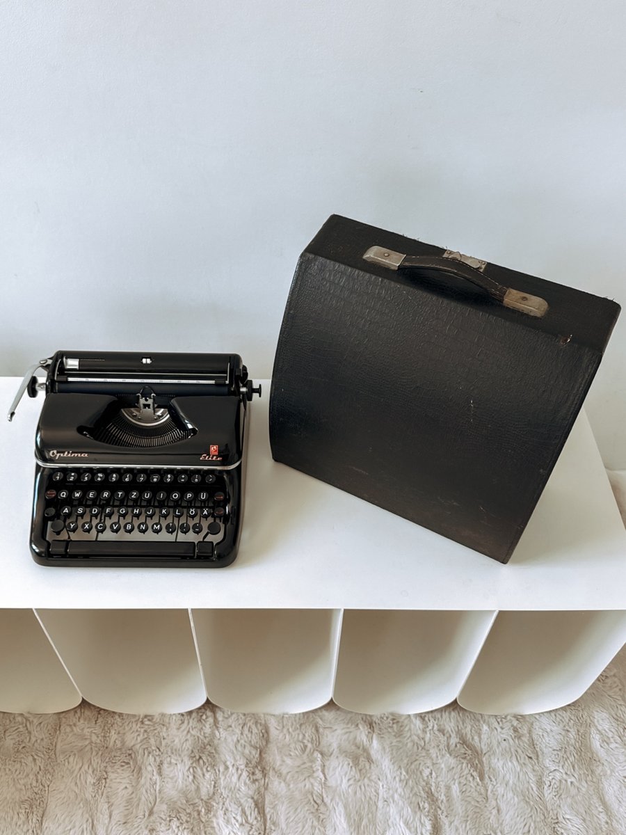 This vintage Optima Elite typewriter is more than just a writing instrument—it’s a striking design piece that instantly elevates any interior. with its glossy black enamel finish, chrome accents, and timeless silhouette, it embodies mid-century craftsmanship while adding a bold, decorative touch to a space.
