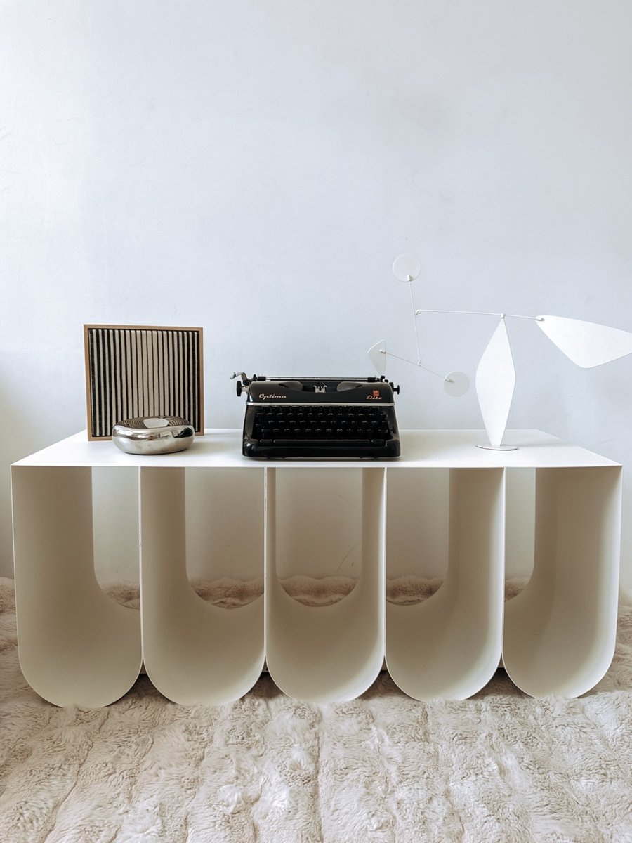 Beyond its functionality, the typewriter stands as a sculptural object—an emblem of creativity and craftsmanship that transforms everyday surroundings into something unique and inspiring. Perfect for collectors, design lovers, or anyone looking to enrich their home with an authentic vintage statement piece.