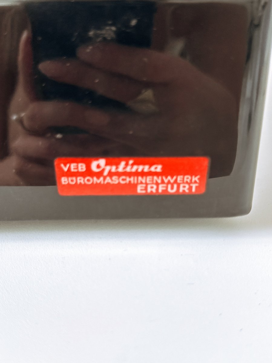 Questa macchina da scrivere vintage Optima Elite è molto più di un semplice strumento di scrittura: è un pezzo di design di grande impatto che eleva immediatamente qualsiasi interno. Con la sua finitura in smalto nero lucido, gli accenti cromati e la sua silhouette senza tempo, incarna l'artigianato di metà secolo e aggiunge un tocco decorativo e audace a uno spazio.