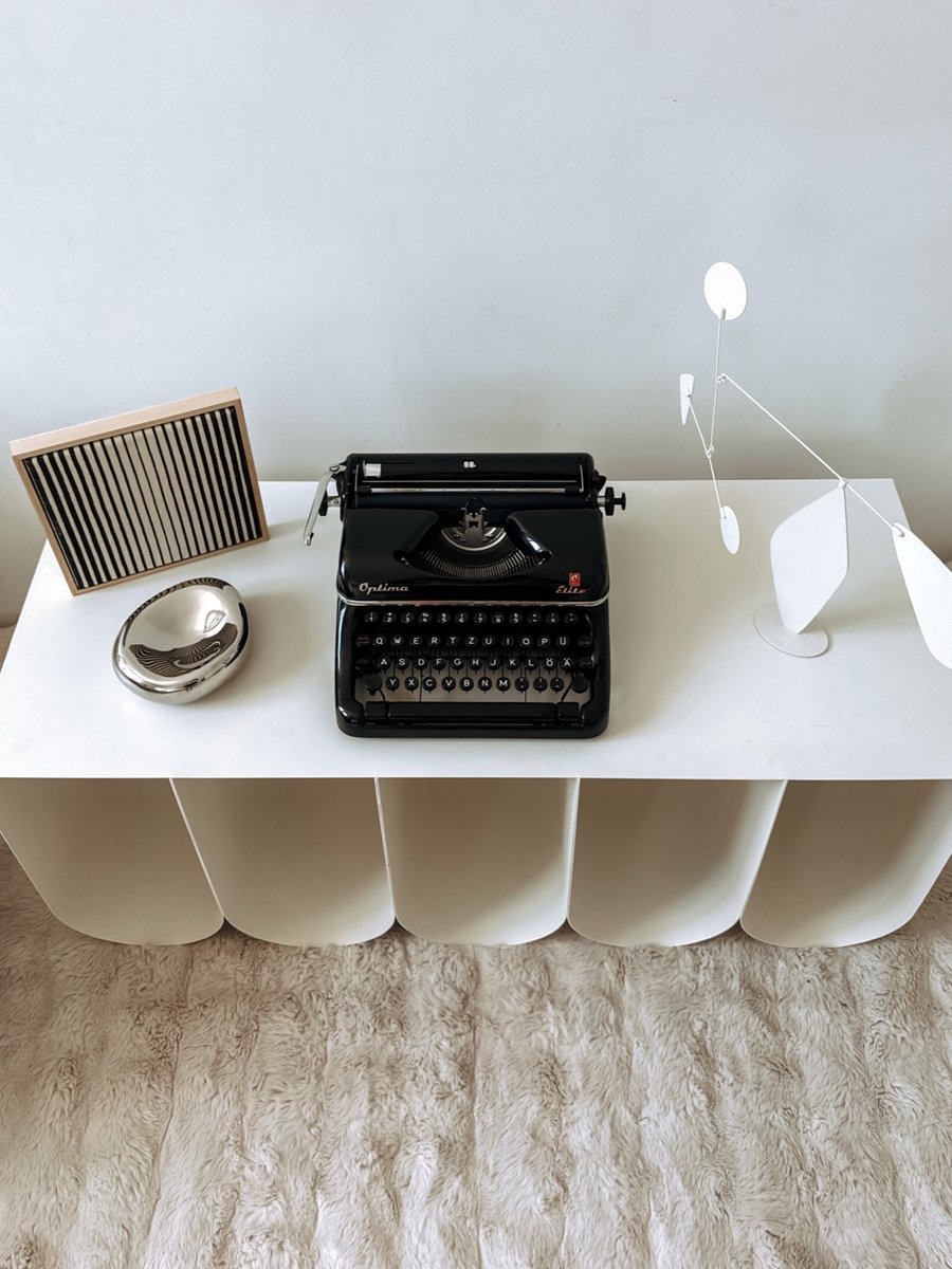 Whether placed on a desk, console, or bookshelf, this typewriter serves as a conversation starter, reflecting the eclectic taste and refined eye of its owner. It introduces a layer of history and character to modern interiors, blending effortlessly with minimalist, industrial, or eclectic décor.