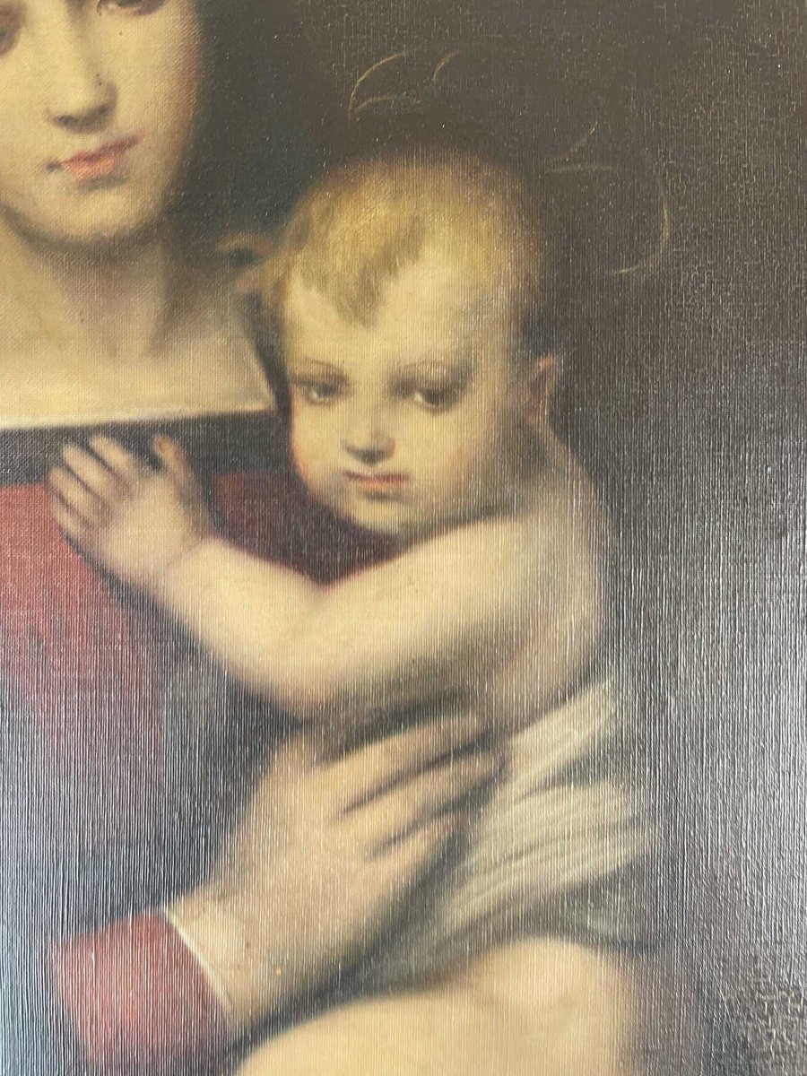The work in question is a tender representation of Madonna with child, a religious subject inserted in a naturalistic context as can be seen from the setting that surrounds the two characters.