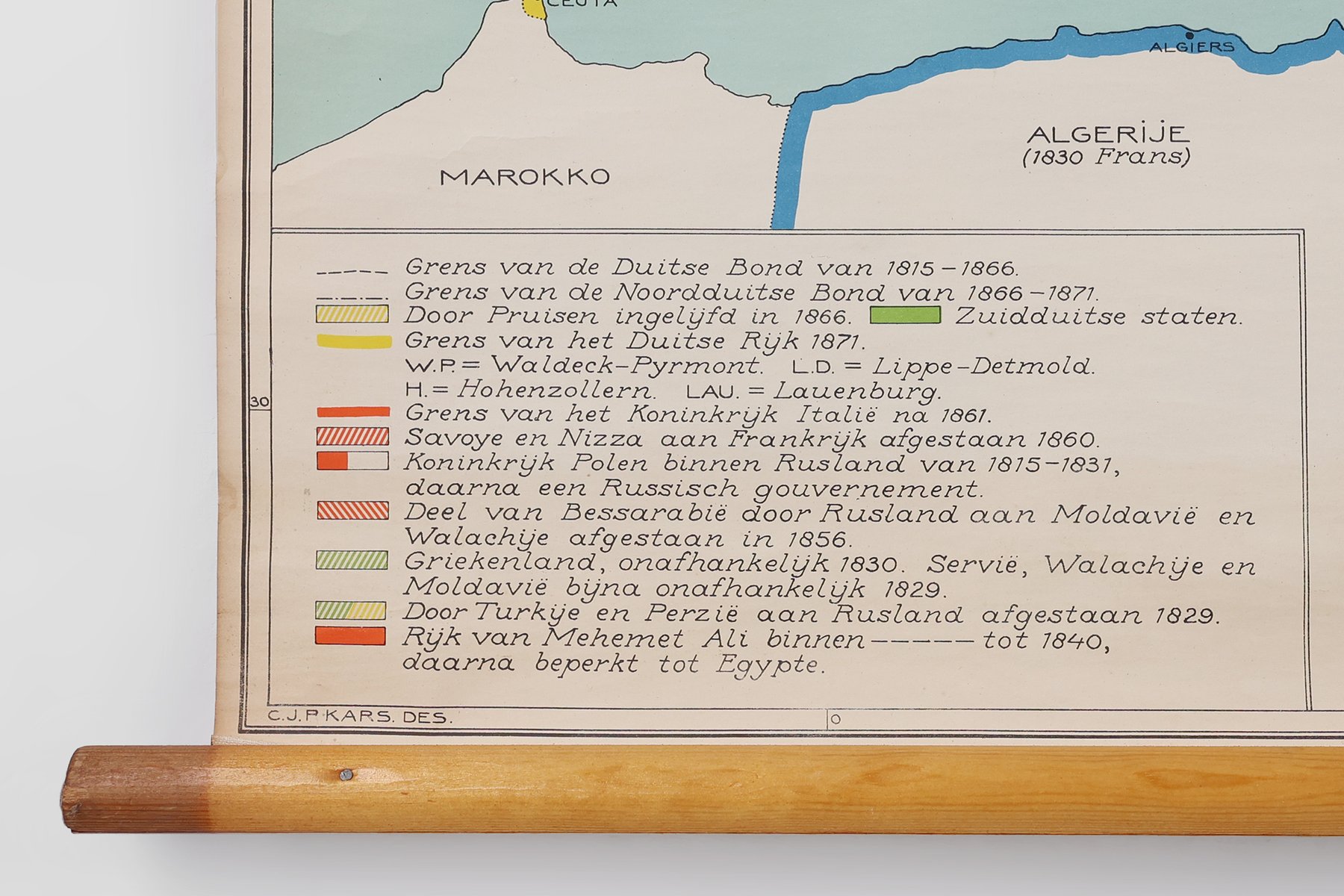 Mappa vintage dell'Europa, 1815-1871, Belgio, anni '50