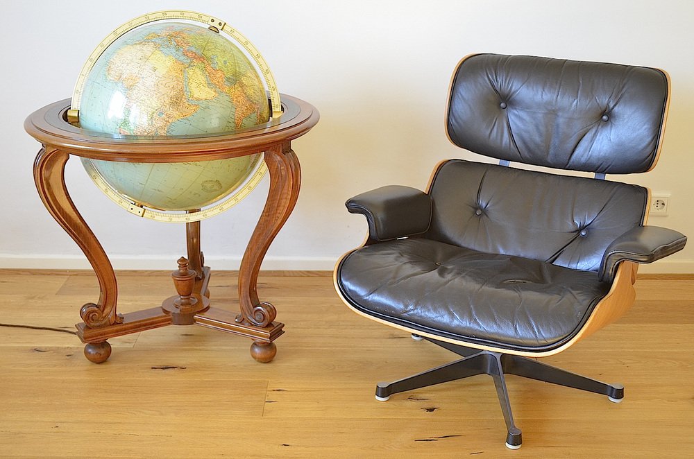 La sfera del mappamondo è appesa alla struttura del telaio in modo semicardanico ed è quindi molto flessibile quando la si considera.