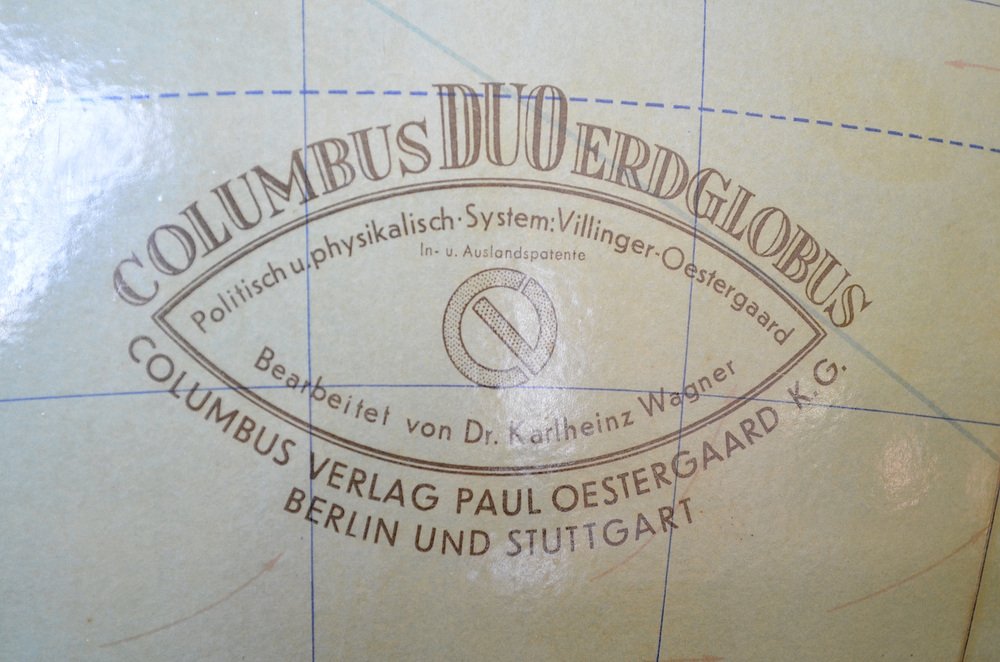 Grande mappamondo da appoggio della Columbus Verlag Paul Oestergaard La bozza di questo mappamondo risale agli anni '40-'50