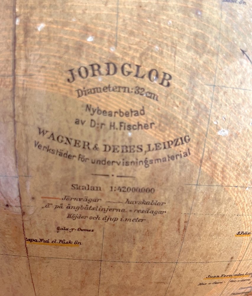 Mappamondo tedesco del Dr. H. Fischer per Wagner & Debes, Lipsia, 1933