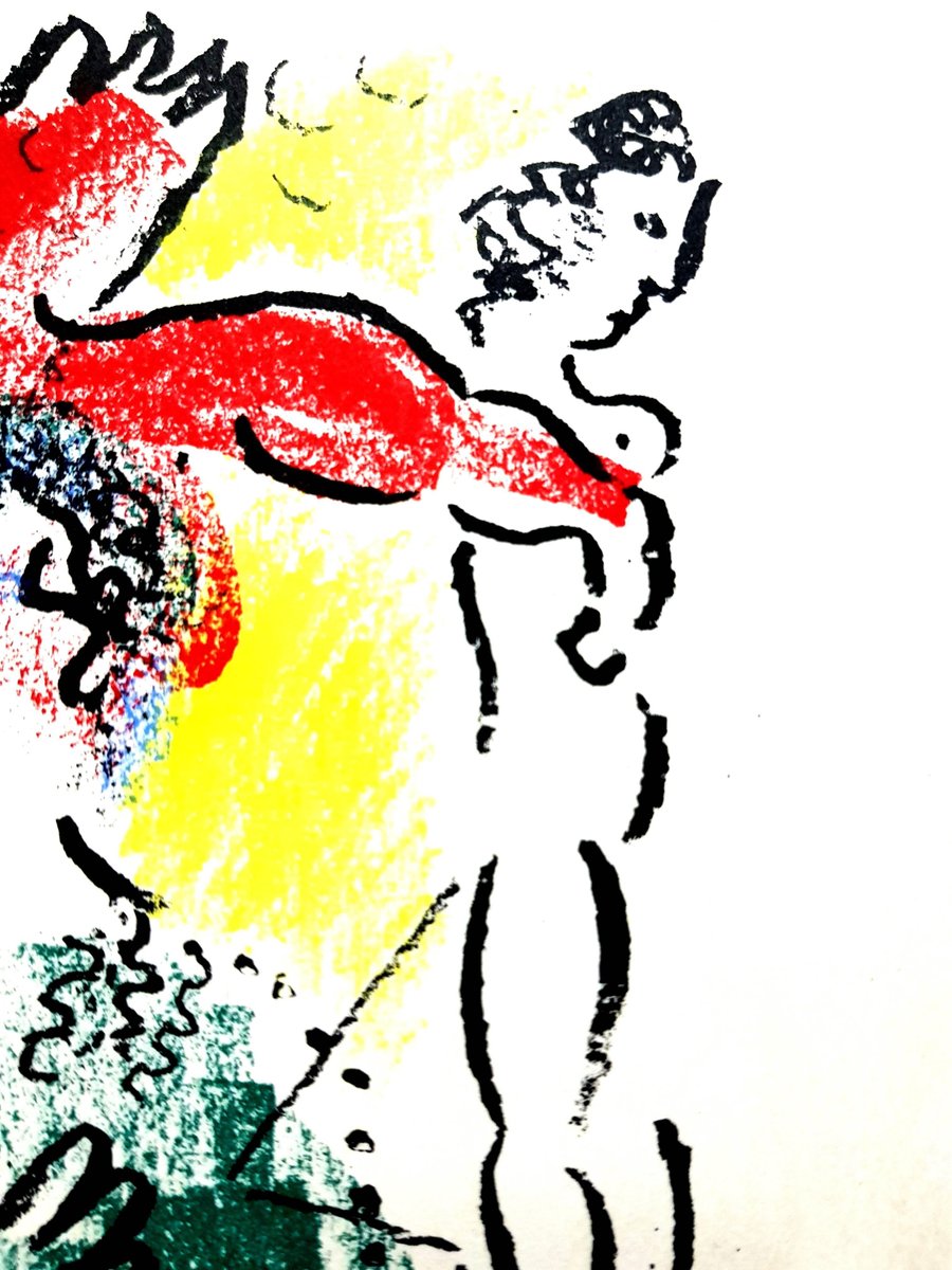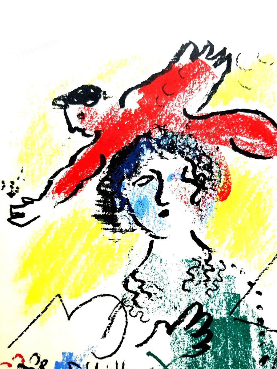 Marc Chagall - Cover - Original Lithograph 1964 Dimensions: 30 x 20 cm Edition of 200 (one of the 200 on Vélin de Rives) Mourlot Press, 1964 Marc Chagall (born in 1887) Marc Chagall was born in Belarus in 1887 and developed an early interest in art. After studying painting, in 1907 he left Russia for Paris, where he lived in an artist colony on the city’s outskirts. Fusing his own personal, dreamlike imagery with hints of the fauvism and cubism popular in France at the time, Chagall created his most lasting work—including I and the Village (1911)—some of which would be featured in the Salon des Indépendants exhibitions. After returning to Vitebsk for a visit in 1914, the outbreak of WWI trapped Chagall in Russia. He returned to France in 1923 but was forced to flee the country and Nazi persecution during WWII. Finding asylum in the U.S., Chagall became involved in set and costume design before returning to France in 1948. In his later years, he experimented with new art forms and was commissioned to produce numerous large-scale works. Chagall died in St.-Paul-de-Vence in 1985. The Village Marc Chagall was born in a small Hassidic community on the outskirts of Vitebsk, Belarus, on July 7, 1887. His father was a fishmonger, and his mother ran a small sundries shop in the village. As a child, Chagall attended the Jewish elementary school, where he studied Hebrew and the Bible, before later attending the Russian public school. He began to learn the fundamentals of drawing during this time, but perhaps more importantly, he absorbed the world around him, storing away the imagery and themes that would feature largely in most of his later work. At age 19 Chagall enrolled at a private, all-Jewish art school and began his formal education in painting, studying briefly with portrait artist Yehuda Pen. However, he left the school after several months, moving to St. Petersburg in 1907 to study at the Imperial Society for the Protection of Fine Arts. The following year, he enrolled at the Svanseva School, studying with set designer Léon Bakst, whose work had been featured in Sergei Diaghilev's Ballets Russes. This early experience would prove important to Chagall’s later career as well. Despite this formal instruction, and the widespread popularity of realism in Russia at the time, Chagall was already establishing his own personal style, which featured a more dreamlike unreality and the people, places and imagery that were close to his heart. Some examples from this period are his Window Vitebsk (1908) and My Fianceé with Black Gloves (1909), which pictured Bella Rosenfeld, to whom he had recently become engaged. The Beehive Despite his romance with Bella, in 1911 an allowance from Russian parliament member and art patron Maxim Binaver enabled Chagall to move to Paris, France. After settling briefly in the Montparnasse neighborhood, Chagall moved further afield to an artist colony known as La Ruche (“The Beehive”), where he began to work side by side with abstract painters such as Amedeo Modigliani and Fernand Léger as well as the avant-garde poet Guillaume Apollinaire. At their urging, and under the influence of the wildly popular fauvism and cubism, Chagall lightened his palette and pushed his style ever further from reality. I and the Village (1911) and Homage to Apollinaire (1912) are among his early Parisian works, widely considered to be his most successful and representative period. Though his work stood stylistically apart from his cubist contemporaries, from 1912 to 1914 Chagall exhibited several paintings at the annual Salon des Indépendants exhibition, where works by the likes of Juan Gris, Marcel Duchamp and Robert Delaunay were causing a stir in the Paris art world. Chagall’s popularity began to spread beyond La Ruche, and in May 1914 he traveled to Berlin to help organize his first solo exhibition, at Der Sturm Gallery. Chagall remained in the city until the highly acclaimed show opened that June. He then returned to Vitebsk, unaware of the fateful events to come. War, Peace and Revolution In August 1914 the outbreak of World War I precluded Chagall’s plans to return to Paris. The conflict did little to stem the flow of his creative output, however, instead merely giving him direct access to the childhood scenes so essential to his work, as seen in paintings such as Jew in Green (1914) and Over Vitebsk (1914). His paintings from this period also occasionally featured images of the war’s impact on the region, as with Wounded Soldier (1914) and Marching (1915). But despite the hardships of life during wartime, this would also prove to be a joyful period for Chagall. In July 1915 he married Bella, and she gave birth to a daughter, Ida, the following year. Their appearance in works such as Birthday (1915), Bella and Ida by the Window (1917) and several of his “Lovers” paintings give a glimpse of the island of domestic bliss that was Chagall’s amidst the chaos. To avoid military service and stay with his new family, Chagall took a position as a clerk in the Ministry of War Economy in St. Petersburg. While there he began work on his autobiography and also immersed himself in the local art scene, befriending novelist Boris Pasternak, among others. He also exhibited his work in the city and soon gained considerable recognition. That notoriety would prove important in the aftermath of the 1917 Russian Revolution when he was appointed as the Commissar of Fine Arts in Vitebsk. In his new post, Chagall undertook various projects in the region, including the 1919 founding of the Academy of the Arts. Despite these endeavors, differences among his colleagues eventually disillusioned Chagall. In 1920 he relinquished his position and moved his family to Moscow, the post-revolution capital of Russia. In Moscow, Chagall was soon commissioned to create sets and costumes for various productions at the Moscow State Yiddish Theater, where he would paint a series of murals titled I