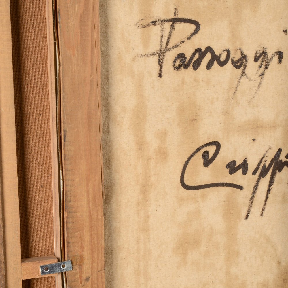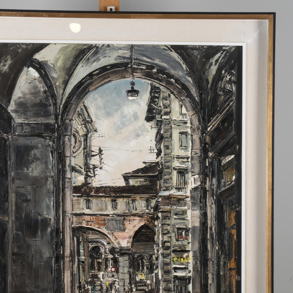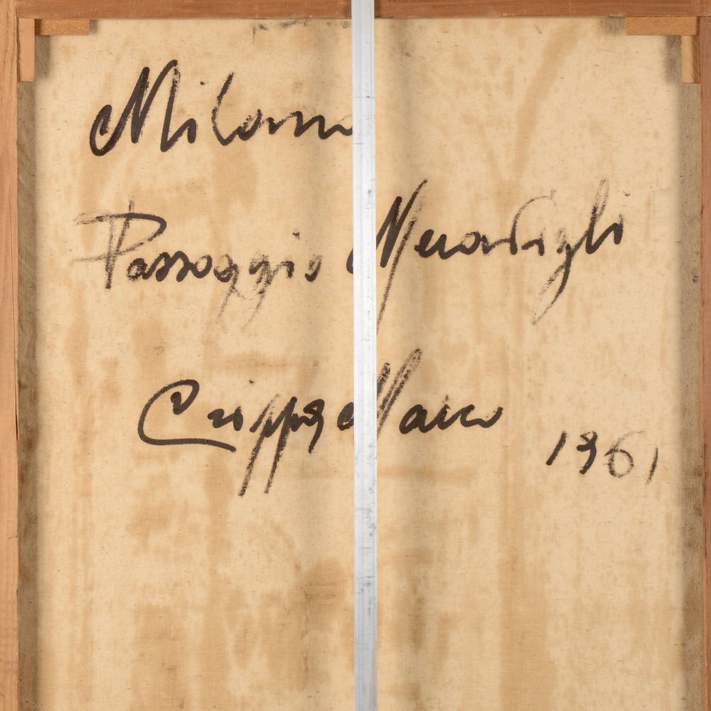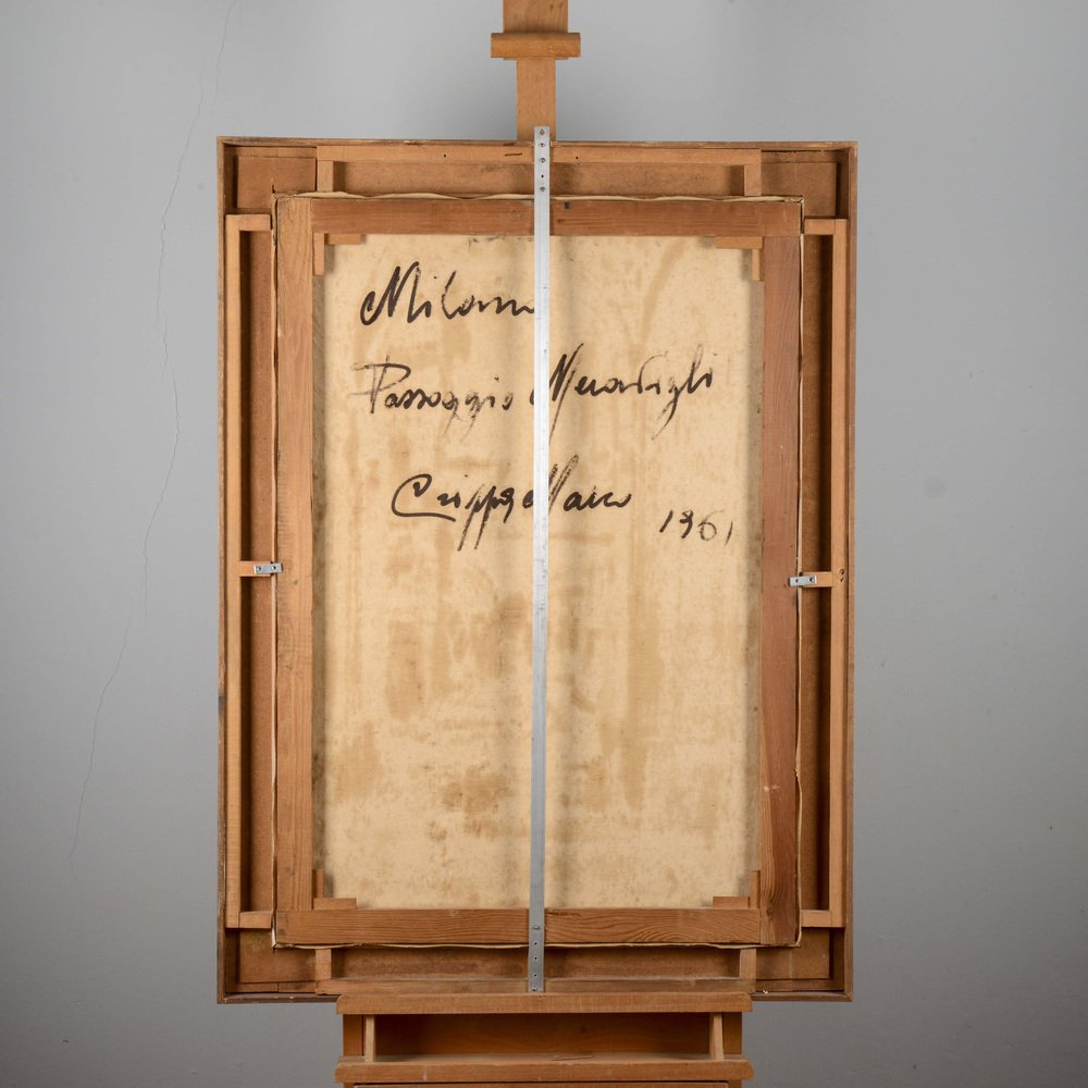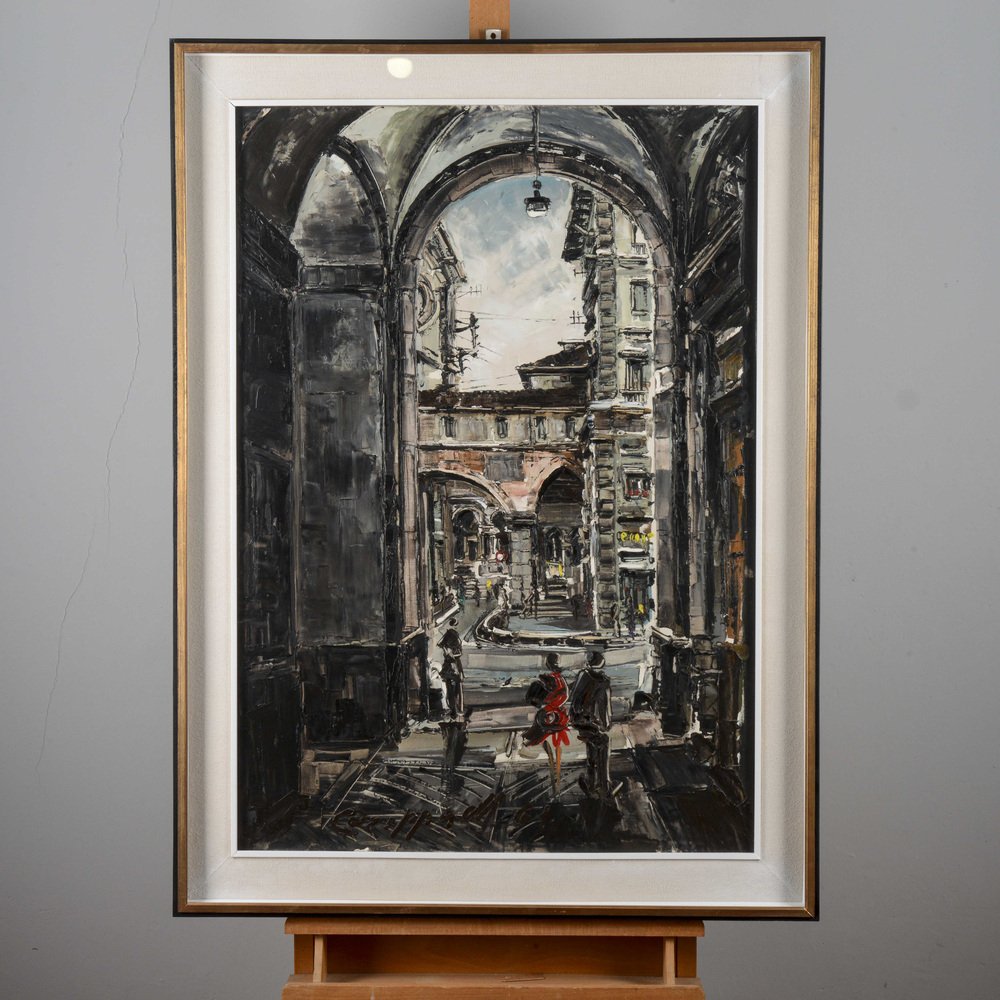 Marco Crippa, Passaggio a Milano, Veduta di Santa Margherita, Piazza Mercanti, 1961, Dipinto ad olio, Con cornice