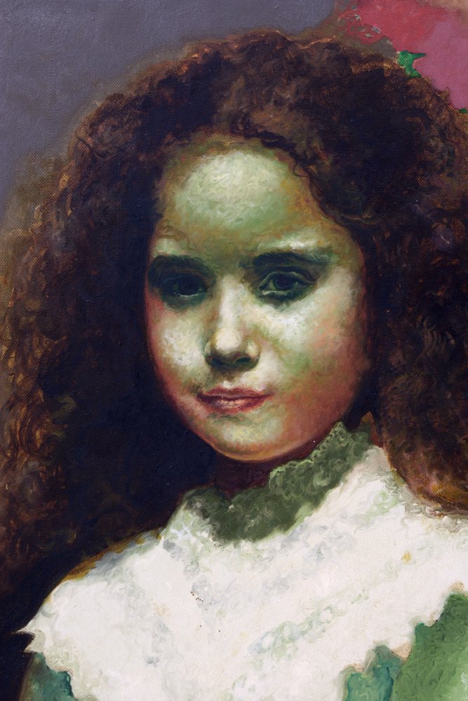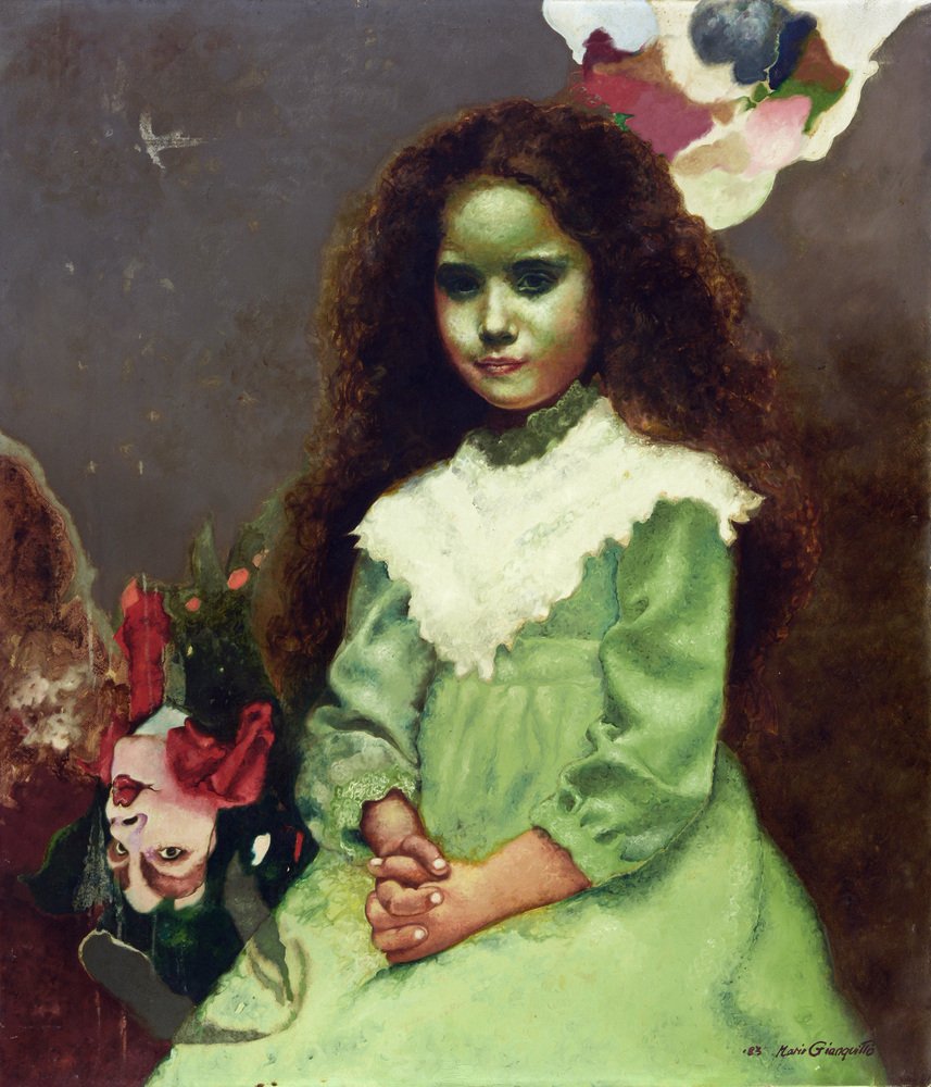 Mario Gianquitto, Volto con fiori, anni '90, Olio su tela, con cornice