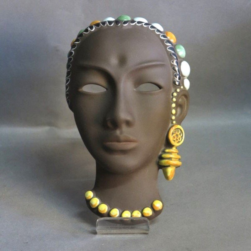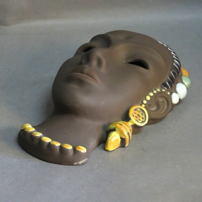 Maschera in ceramica di Karlsruher Majolika, anni '50