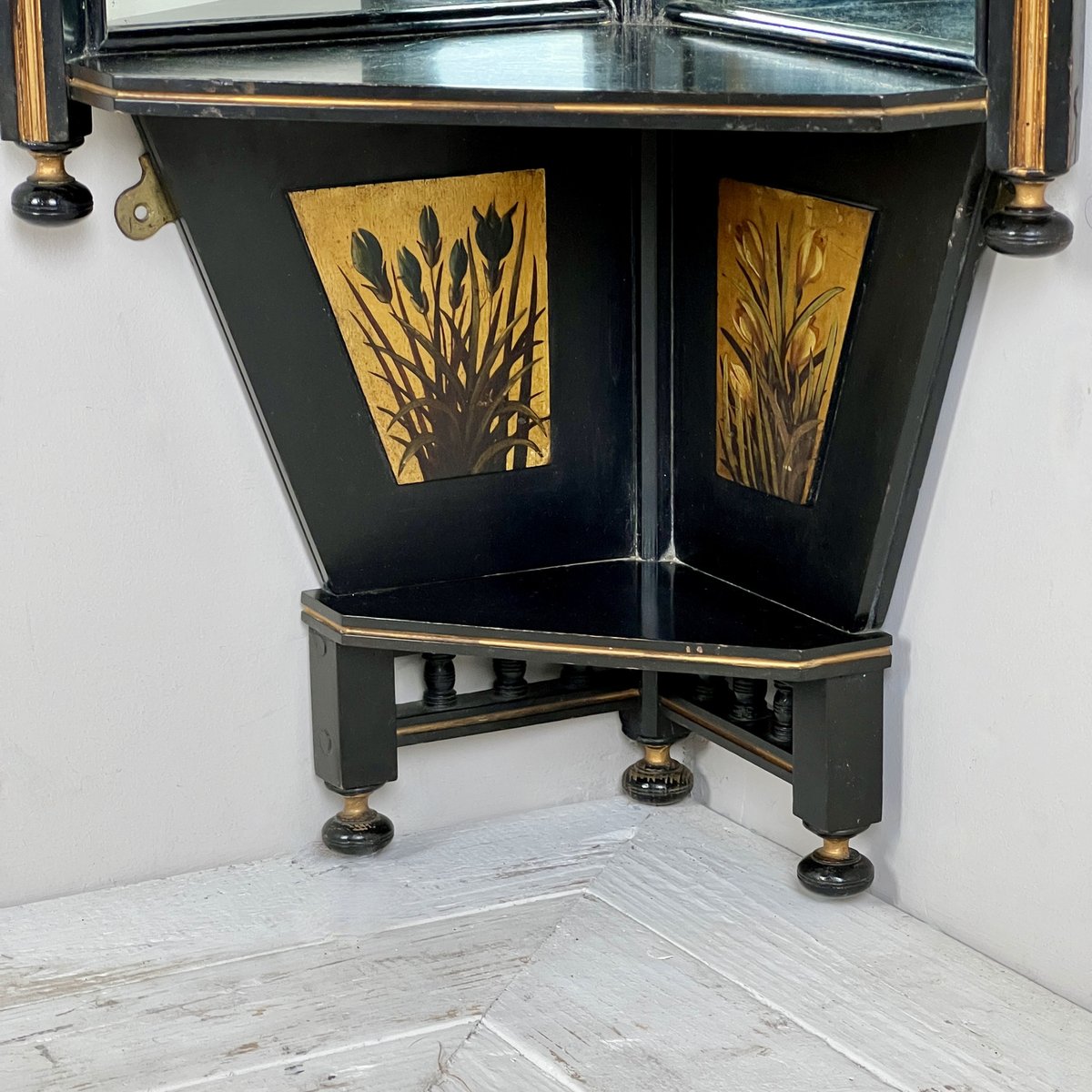 A Late 19th Century Aesthetic Movement Ebonised Corner Wall Shelf in the Eastlake Style