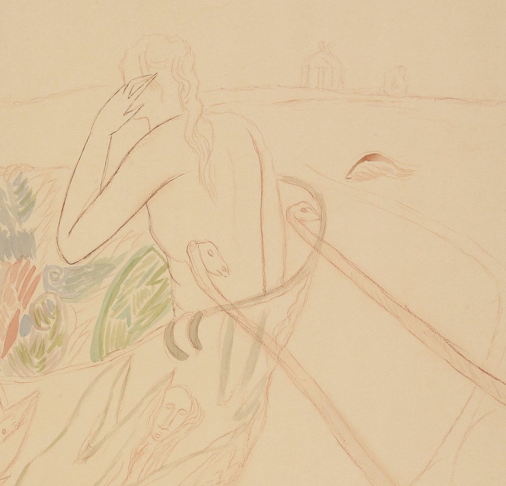 Watercolor, chalk and ink on ivory Fabriano paper (watermark)