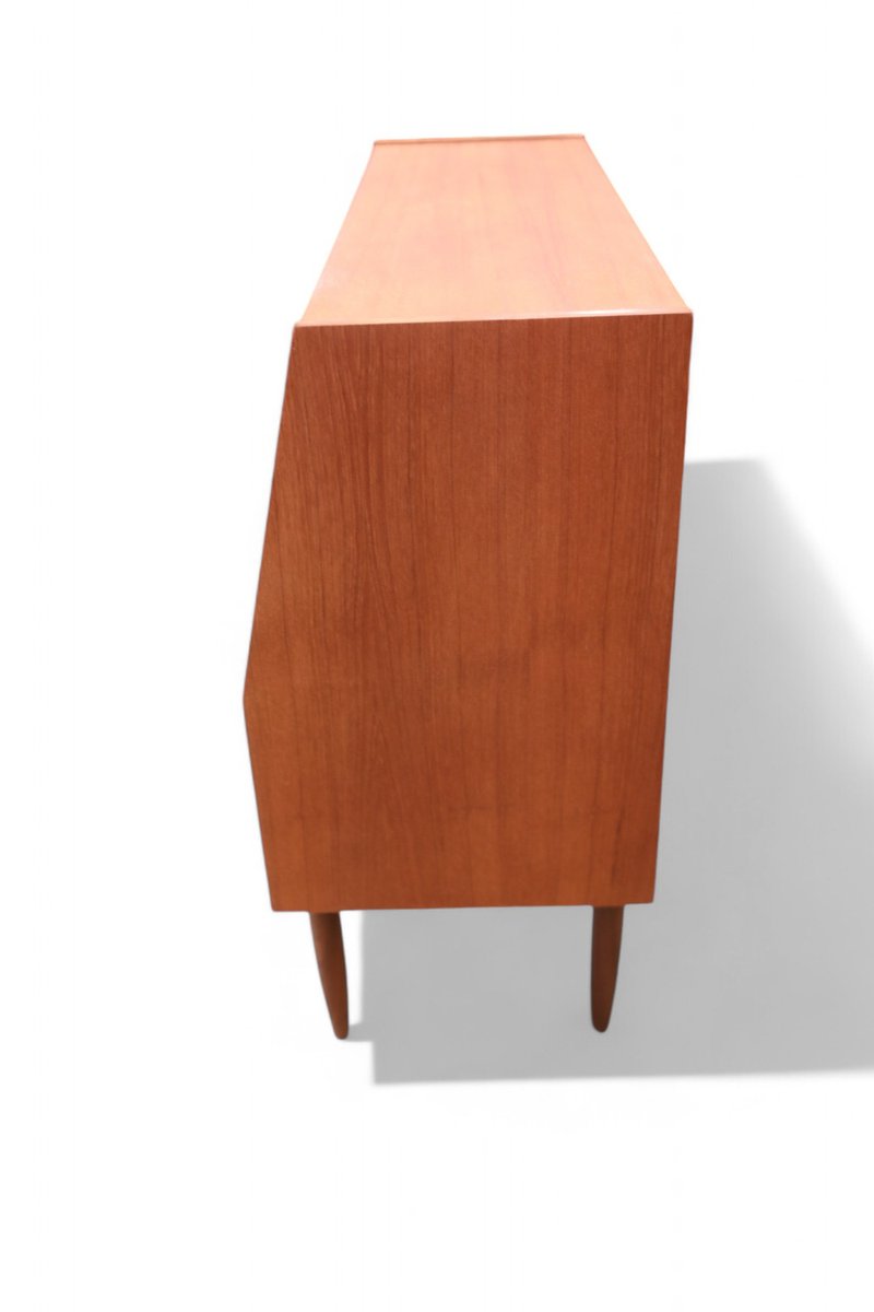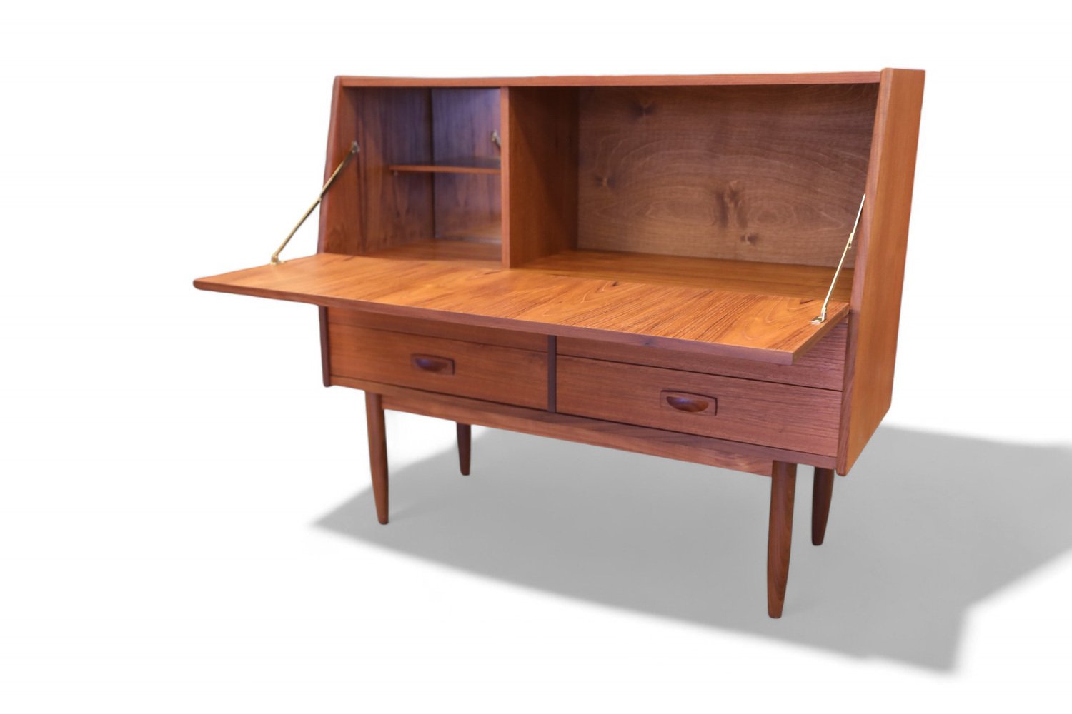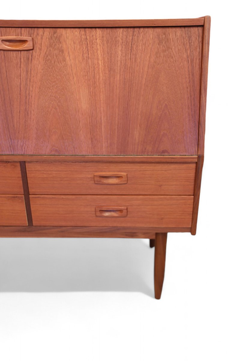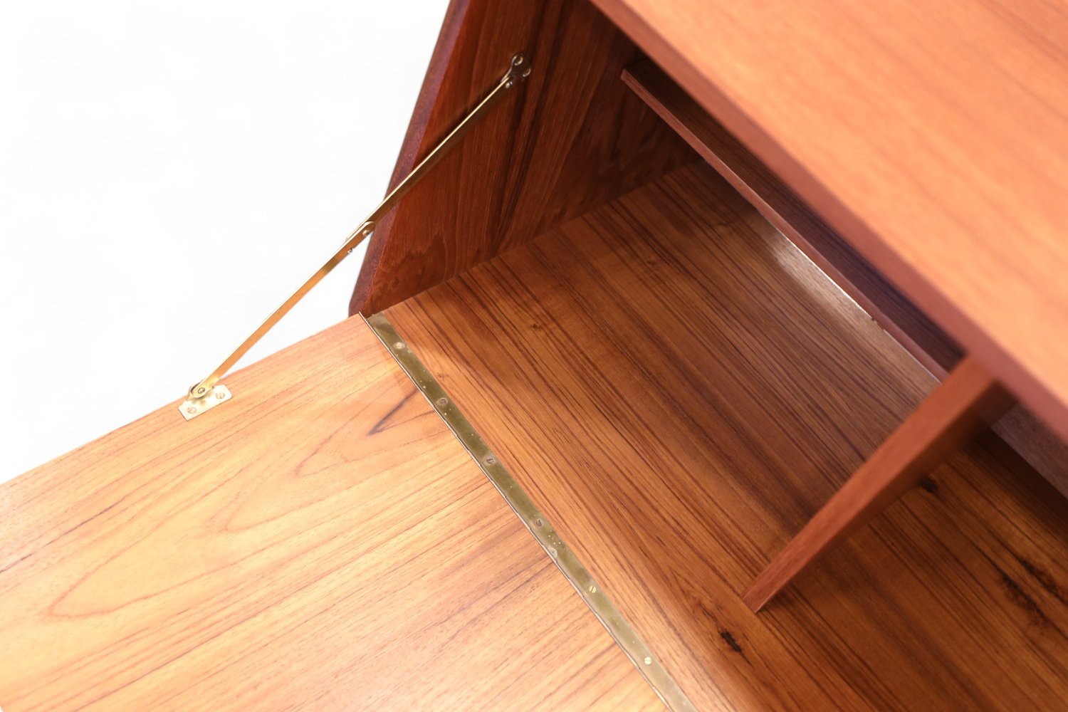 Mobile bar danese indipendente in teak. Il mobile ha dimensioni comode che lo rendono facile da collocare e pratico in diversi ambienti della casa. Il suo design elegante e le linee pulite dello stile lo rendono un bellissimo elemento d'arredo, indipendentemente dal fatto che si trovi in soggiorno, cucina, ingresso o zona pranzo.