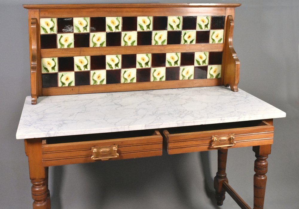 Mobile edoardiano in marmo e betulla, fine XIX secolo