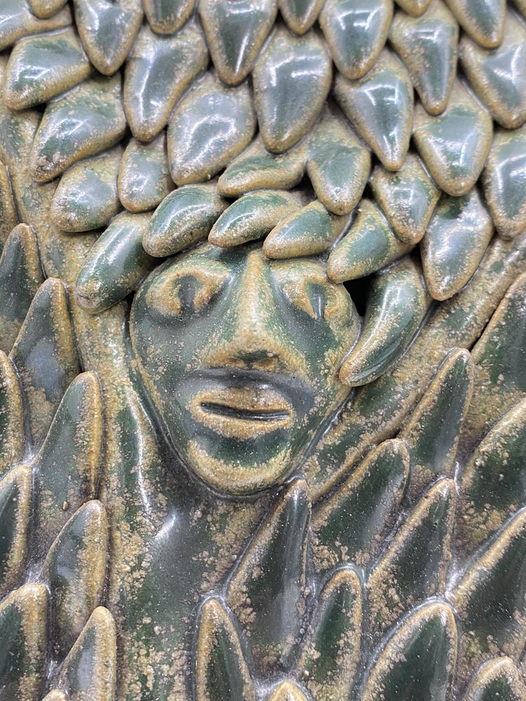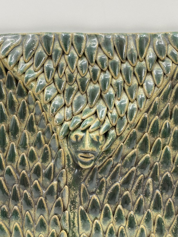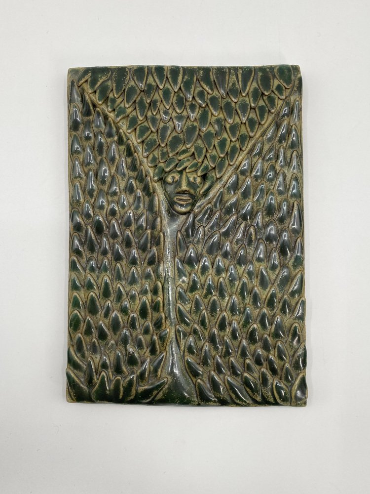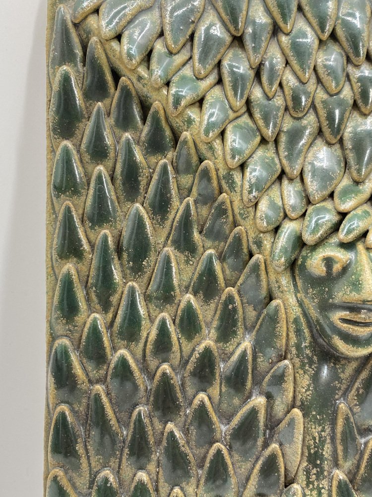Murale in ceramica smaltata con struttura a foglie squamose, Germania, anni '60