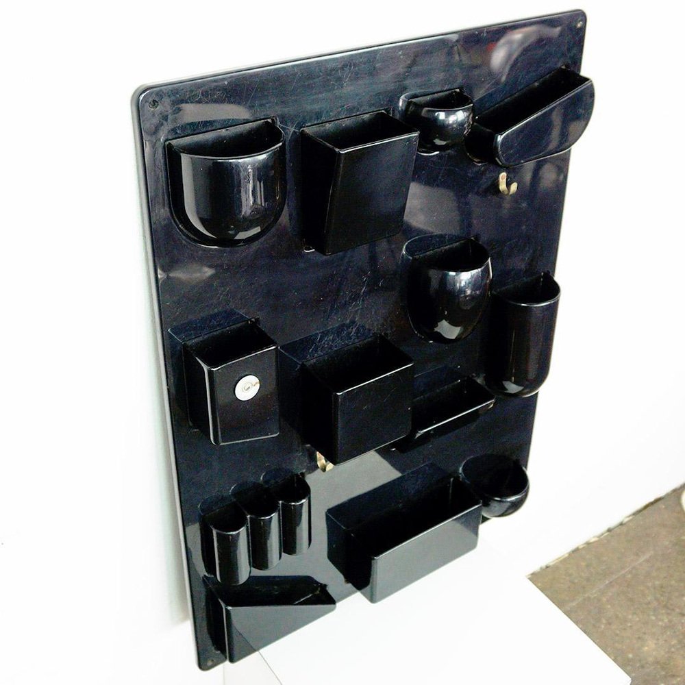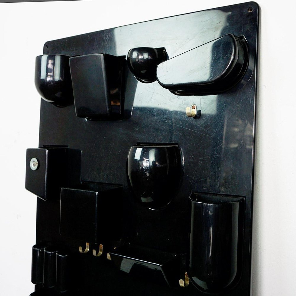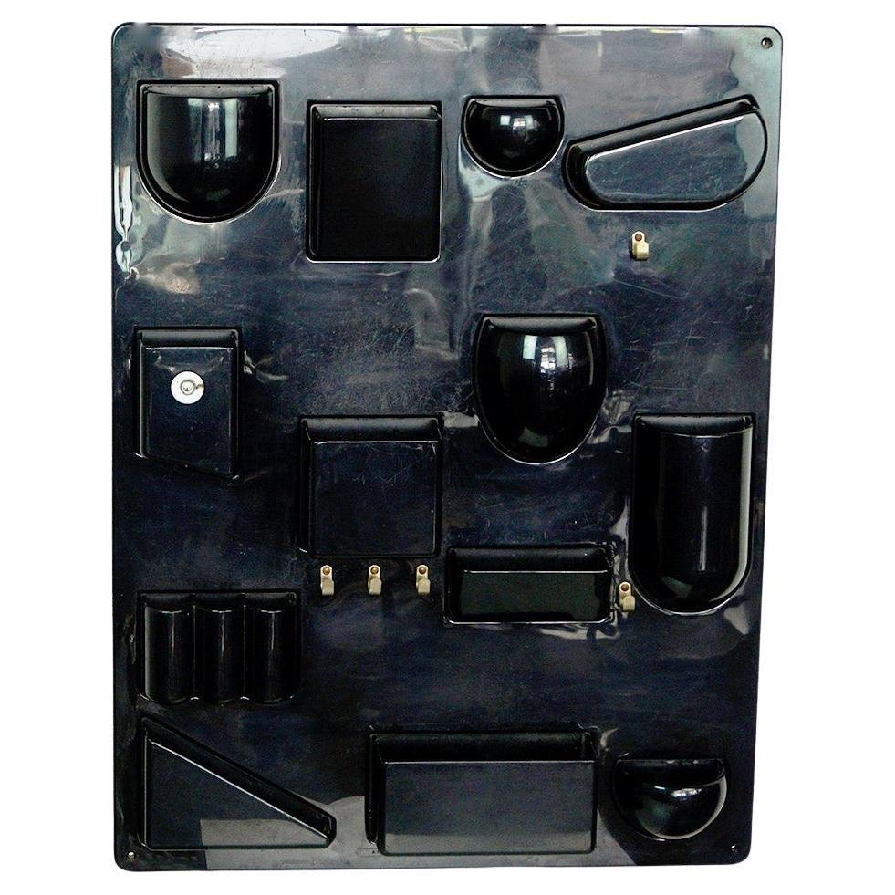 Designed in 1969, Dorothee Maurer Beckers Utensilo Wall storage organizer shelf was produced by M Design Munich Western Germany, Ingo Maurer, her husbands company in the 1970s and has become a saught after midcentury modern design Icon. It is made of black ABS Plastic and is in good condition with some wear as slight scratches according to its age and usage. On the bottom it is marked. It has always been very popular and is still in production , but this one is an early version and will be the perfect addition to any space age or midcentury modern interior, office or Home Office!
