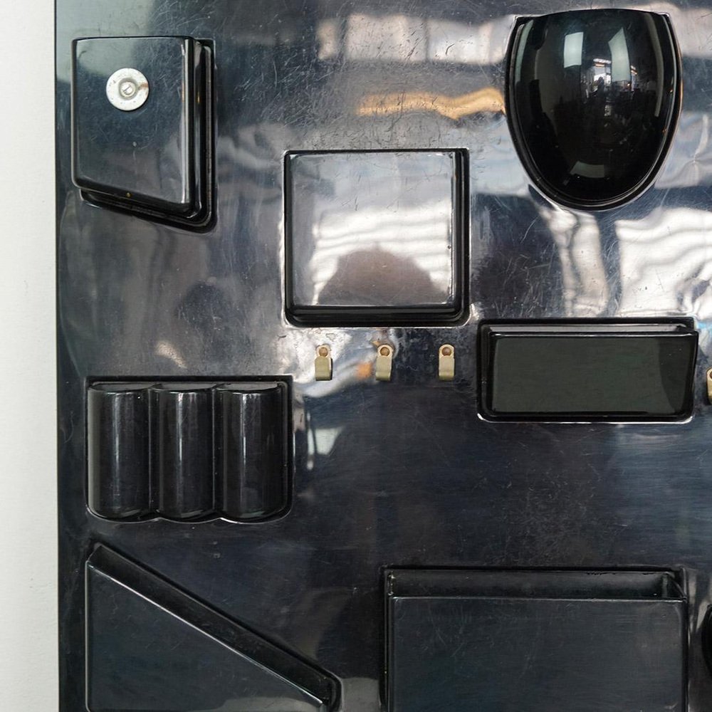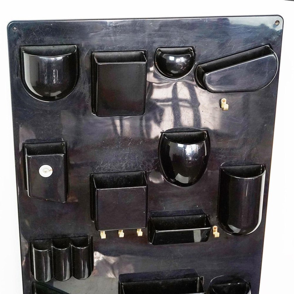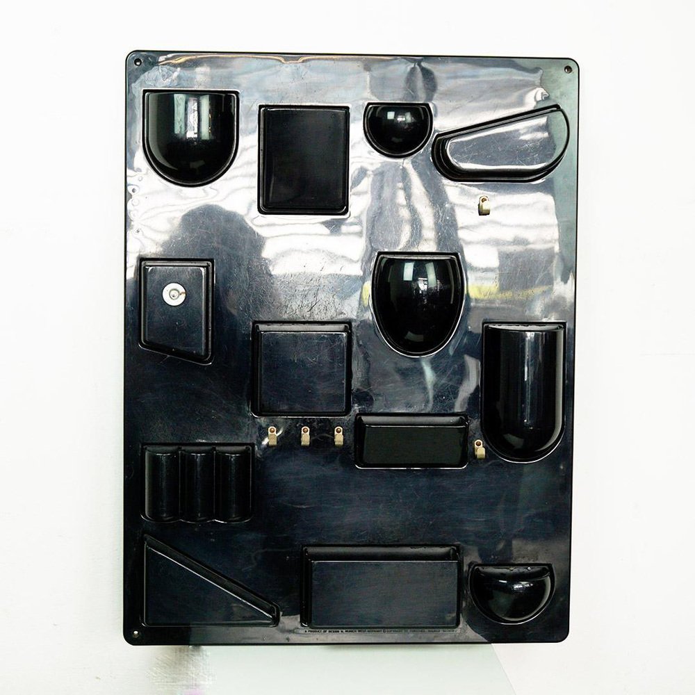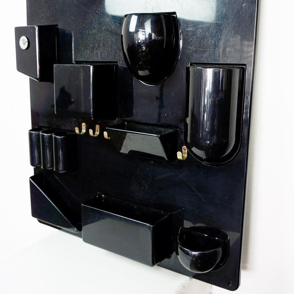 Designed in 1969, Dorothee Maurer Beckers Utensilo Wall storage organizer shelf was produced by M Design Munich Western Germany, Ingo Maurer, her husbands company in the 1970s and has become a saught after midcentury modern design Icon. It is made of black ABS Plastic and is in good condition with some wear as slight scratches according to its age and usage. On the bottom it is marked. It has always been very popular and is still in production , but this one is an early version and will be the perfect addition to any space age or midcentury modern interior, office or Home Office!