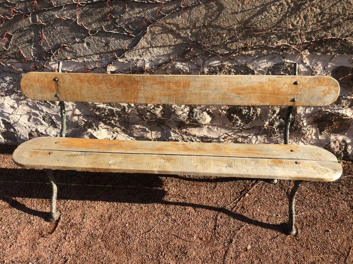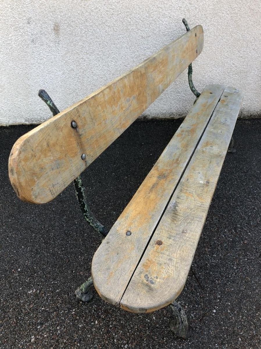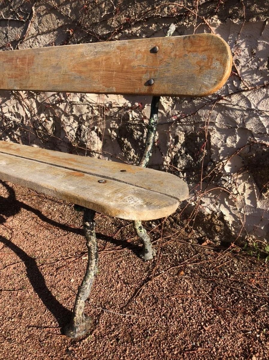 Panca antica in quercia con gambe in ghisa