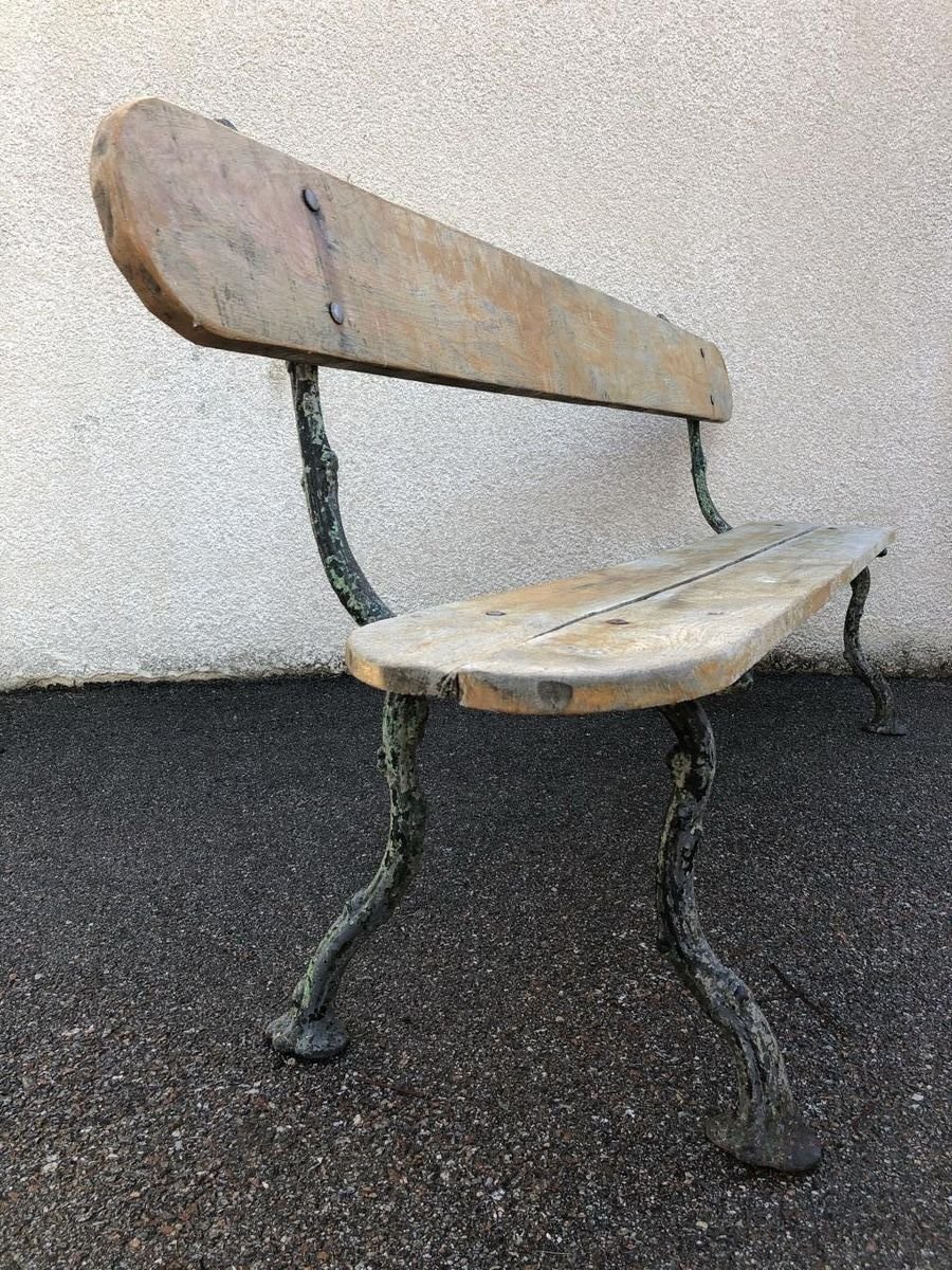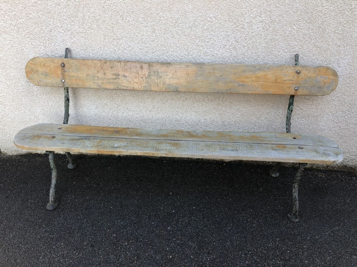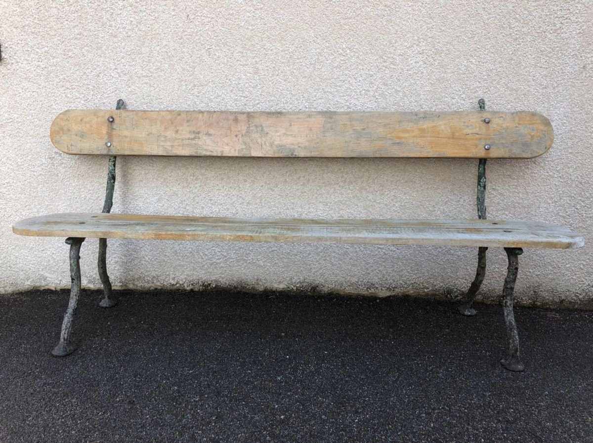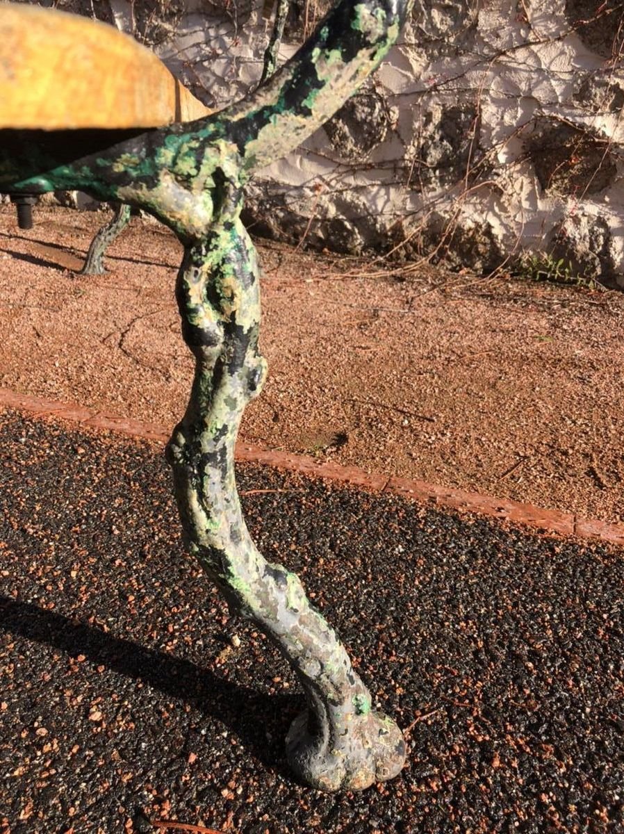 Panca antica in quercia con gambe in ghisa
