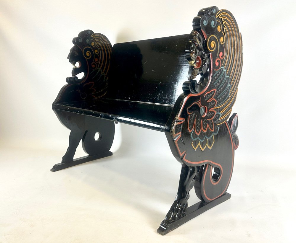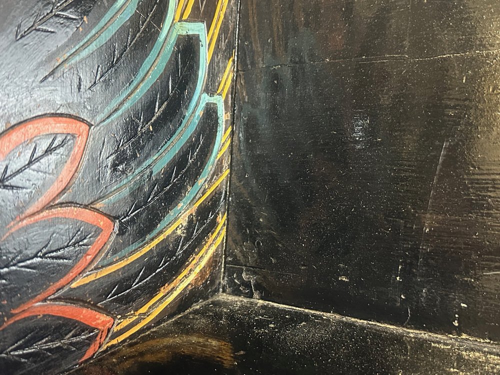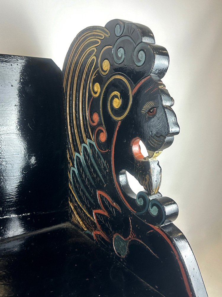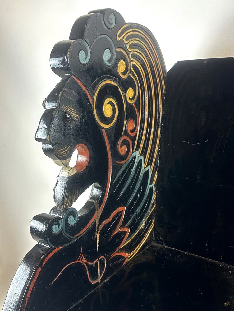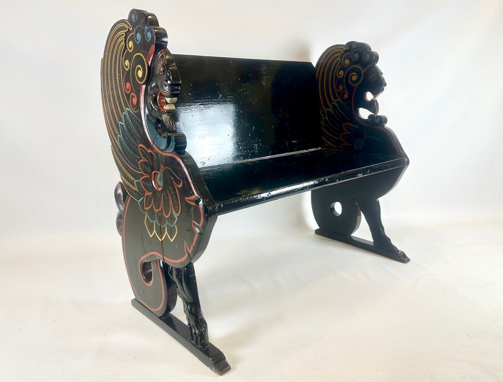 Panca antica intagliata e dipinta a mano, Svezia, inizio XX secolo