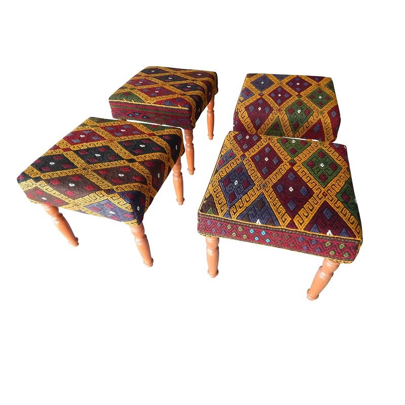 Panca Kilim con tappeto Kilim, Turchia, set di 5