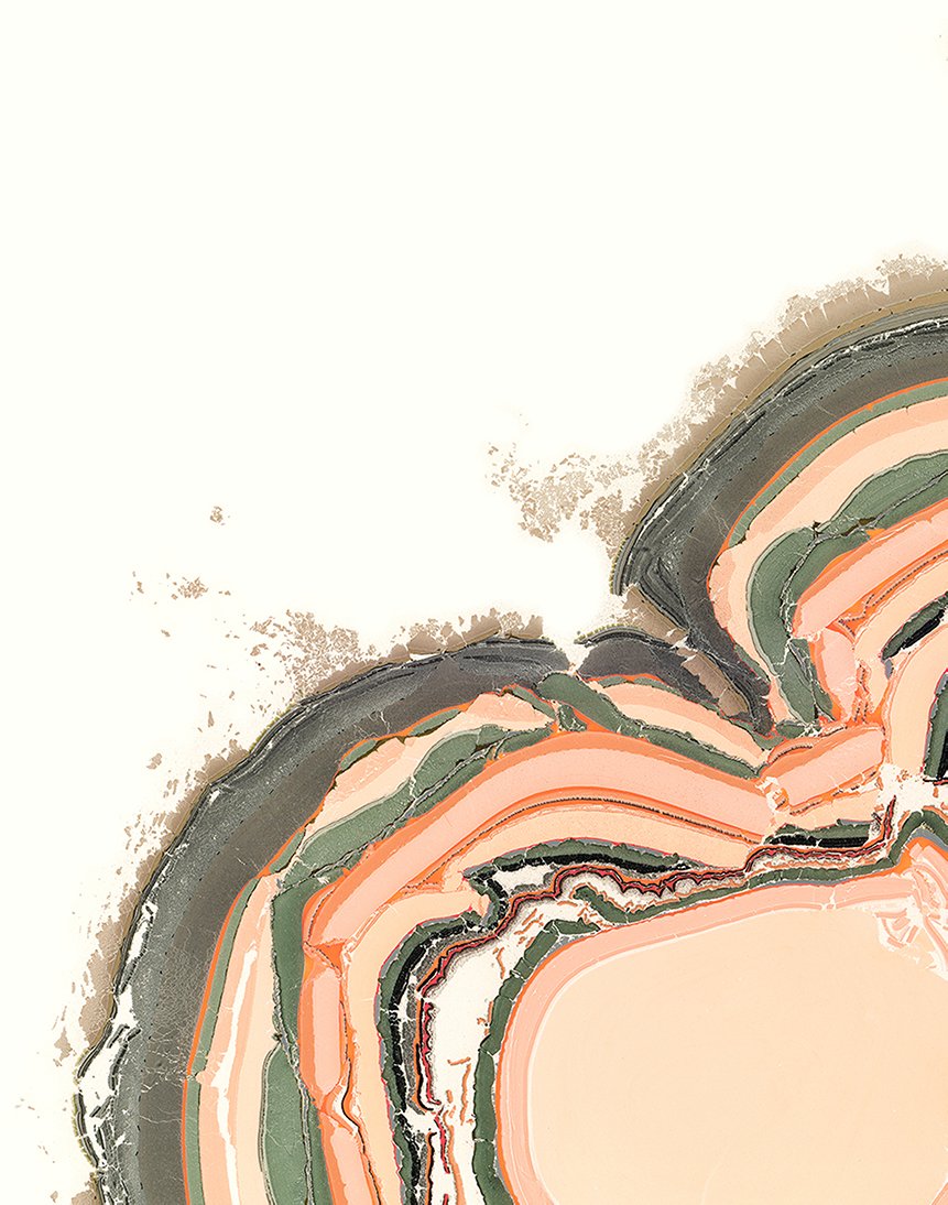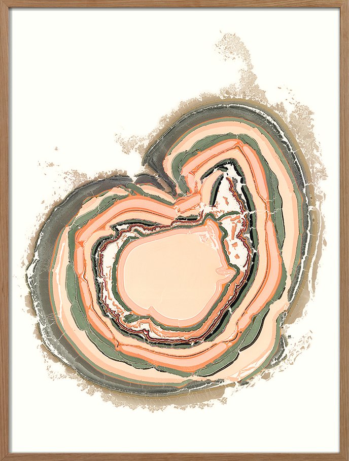A beautiful abstract composition of salmon & olive green, combined with hints of black, burgundy, orange sand and grey.