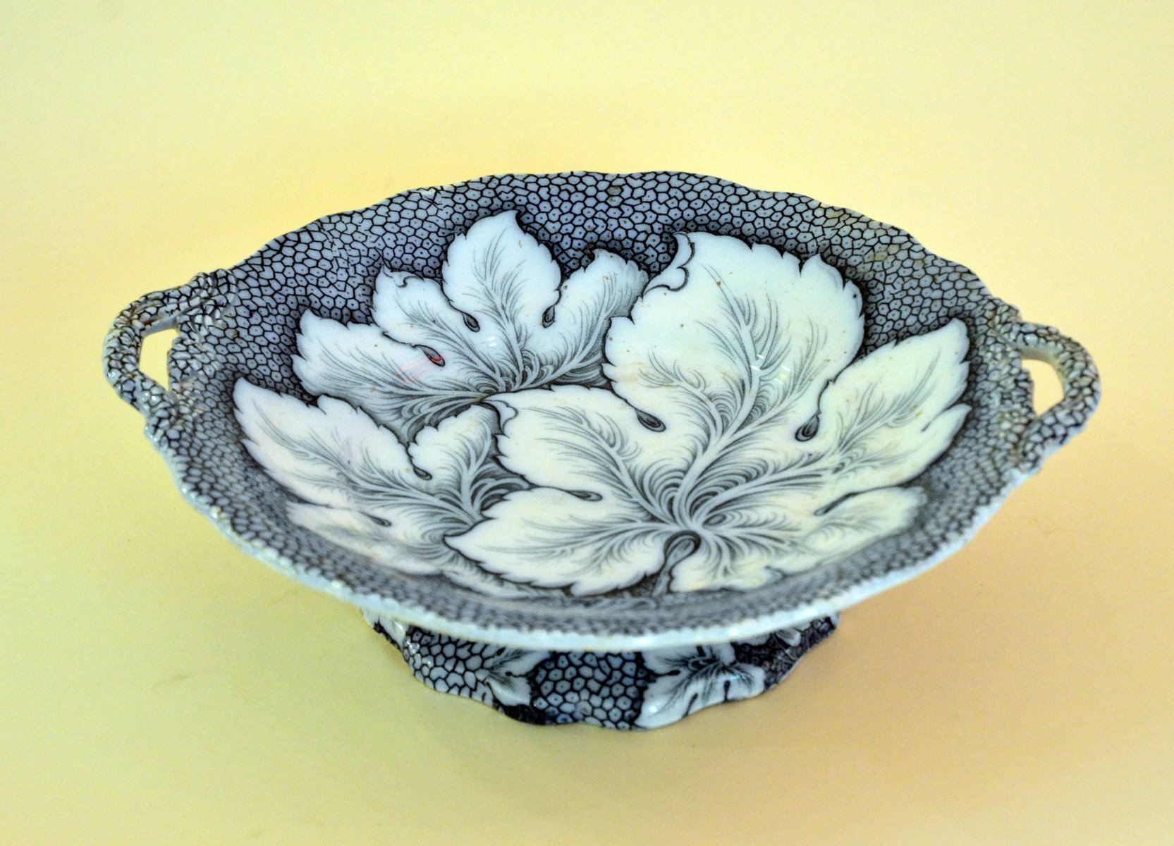 Questo pezzo in ottime condizioni ha un raro motivo di foglie d'uva blu scuro ed è contrassegnato da PEARL WARE e Thomas Dimmock monogramma.Nota del collezionista: Thomas Dimmock & Co è stato attivo tra il 1828 e il 1859 a Shelton, una zona della città di Stoke-on-Trent nello Staffordshire, Inghilterra, tra Hanley e Stoke-upon-Trent.Pearlware è una terracotta fatta da Josiah Wedgwood nel 1779. Fu copiata da altri ceramisti inglesi, come Thomas Dimmock. Le perle sono solo leggermente diverse dal color crema e per molti anni i collezionisti hanno confuso i termini. Solo alcuni colori come il blu, il giallo e il verde sono stati usati come pittura sottosmalto per le perle perché i materiali per altri colori non sopportavano il calore necessario per accendere lo smalto.