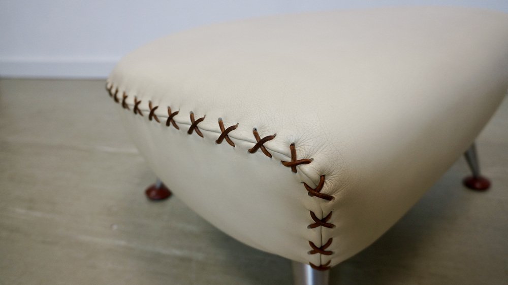 This modern series Ottoman is part of a series known for its eye-catching design and criss-cross core leather lacing. The softly upholstered leather living shell (hard-wearing, non-sensitive nappa leather, slightly pigmented), along with its extremely comfortable cushions, creates a cozy island within the living space. This ottoman is designed to provide a relaxing and dream-inducing experience, whether used on its own or in combination with other pieces from the series, such as the sofa or armchair. Whether as a sofa, armchair or stool, it invites to relax and to dream.