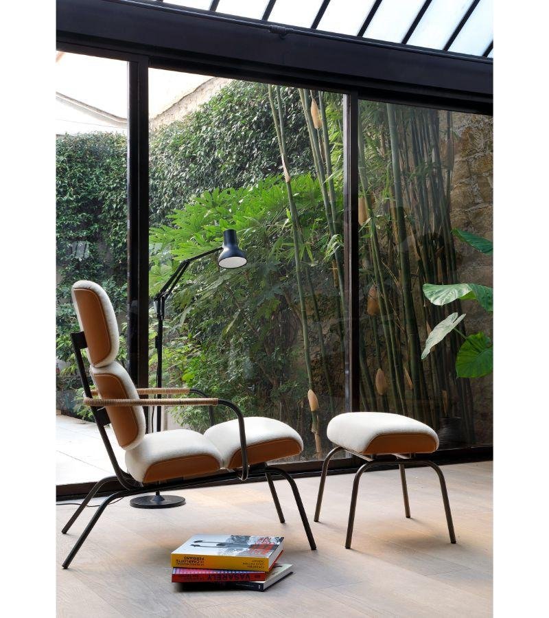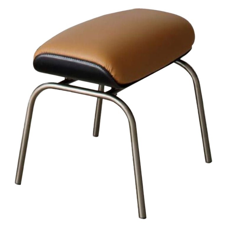Bluemoon ottoman by Patrick Jouin Materials: Fabric upholstered on polyurethane foam. Shell in molded wood. Structure in lacquered bronze metal. Dimensions: D 83 x W 80 x H 45 cm Also available upholstered in different fabrics, leather, and or in customer's own choice of material. The Blue Moon, footrest, is comfortable and sophisticated. It is made by the best Italian craftsmen, whose conditions meet our criteria of quality, choice of materials, and durability.