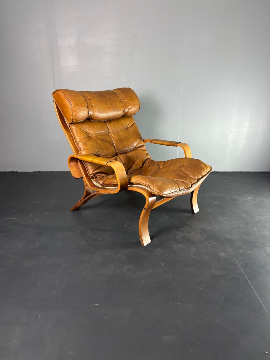 Poltrona Brazilia in pelle e legno curvato di Jan Bengstsson per Scapa Industri Ab, Svezia, anni '70