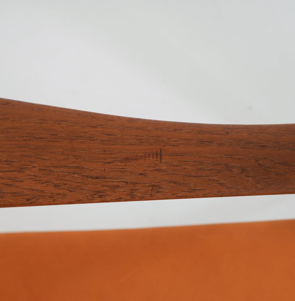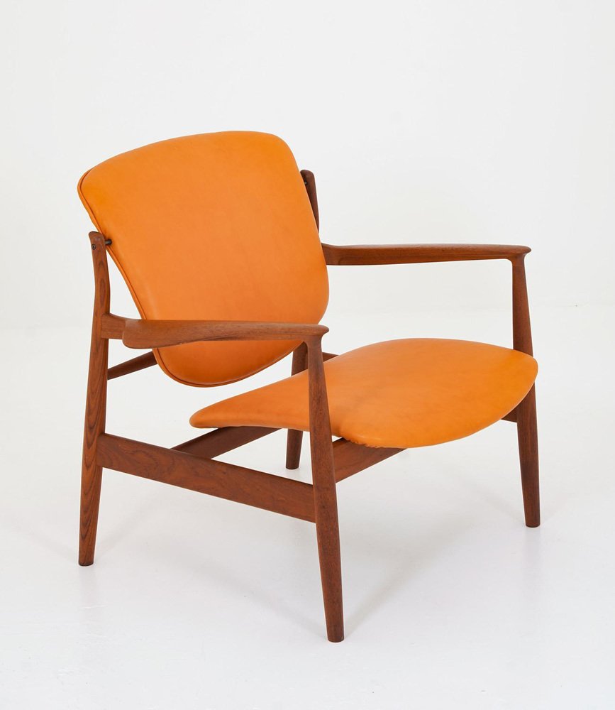 Poltrona FD 136 in pelle color cognac e teak di Finn Juhl, anni '70