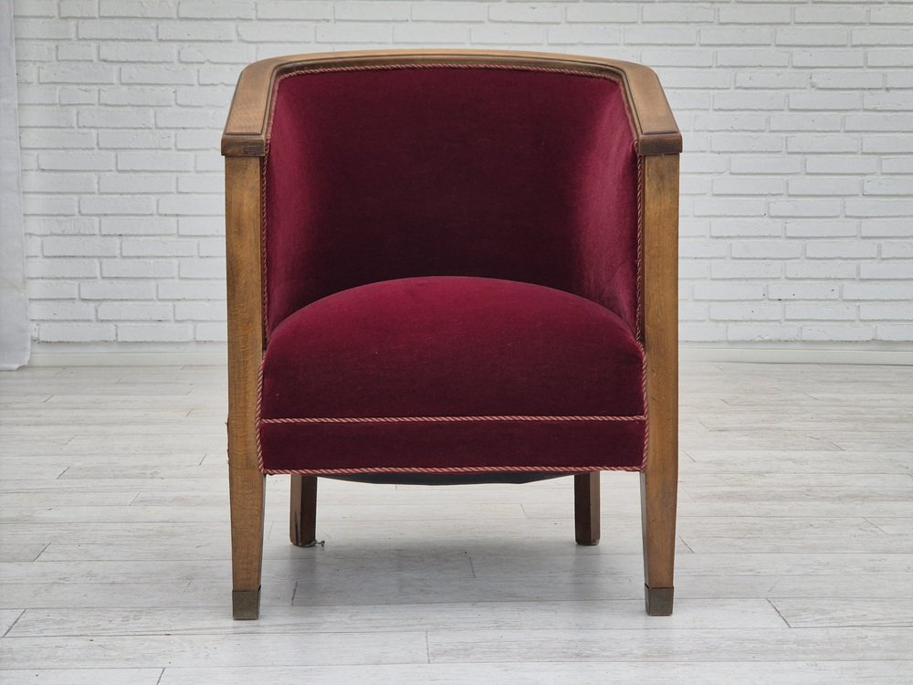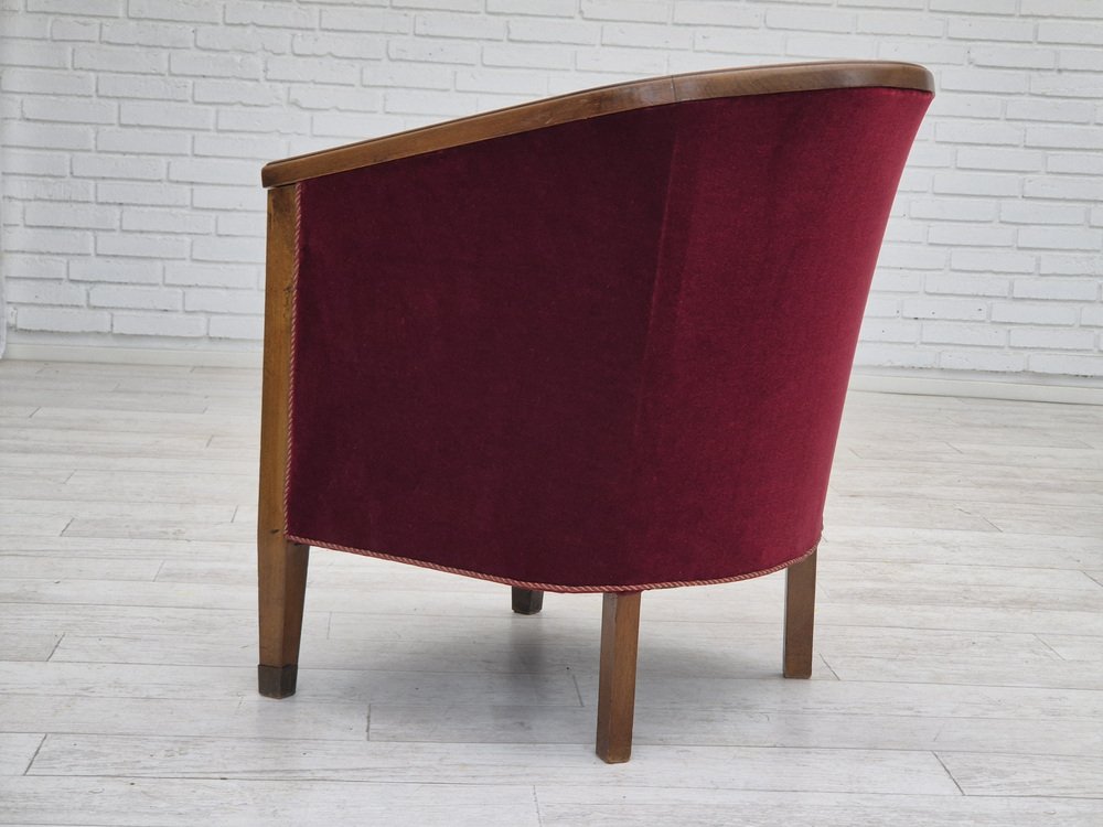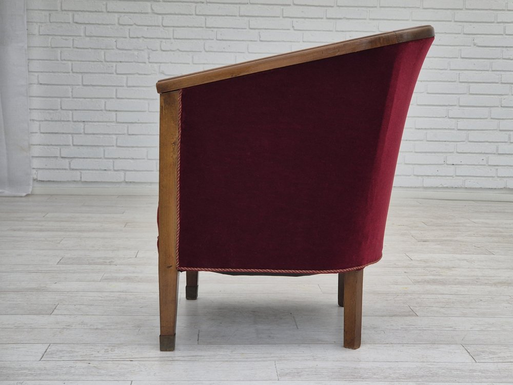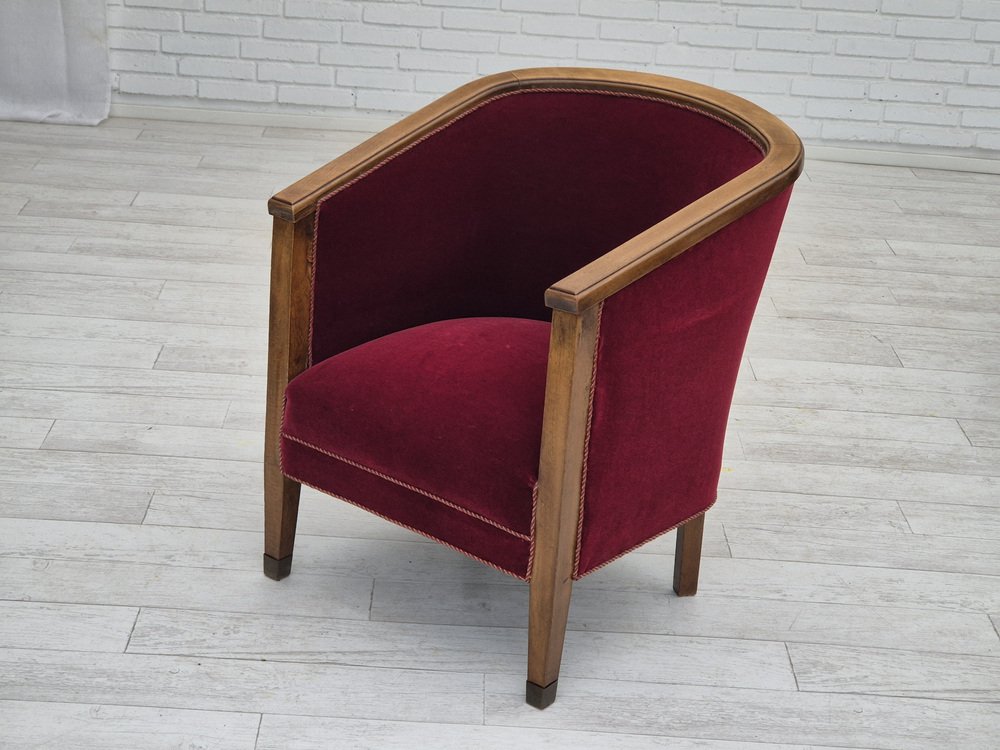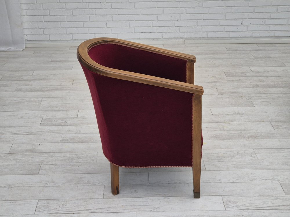 Poltrona in faggio e velluto, Danimarca, anni '50