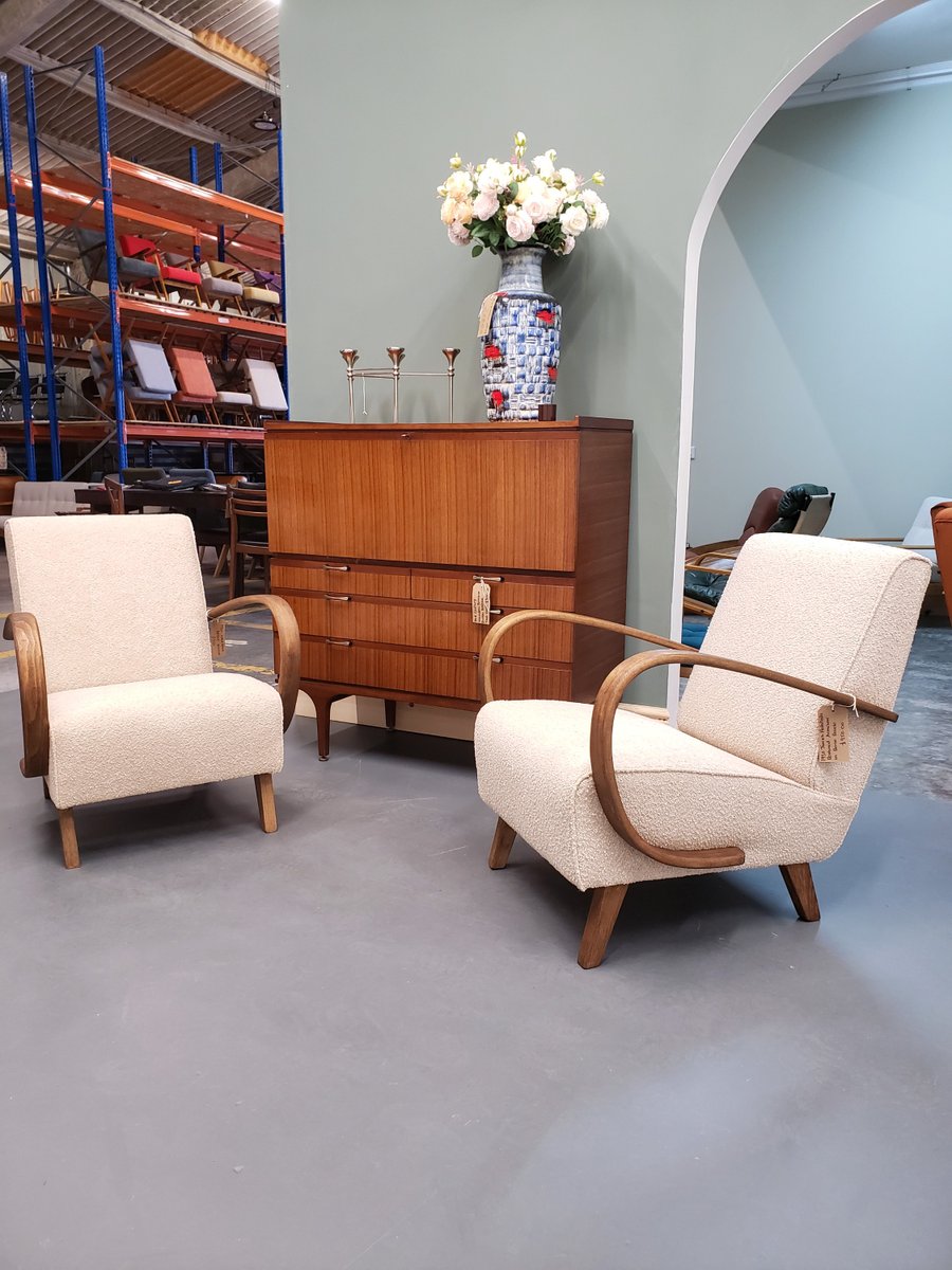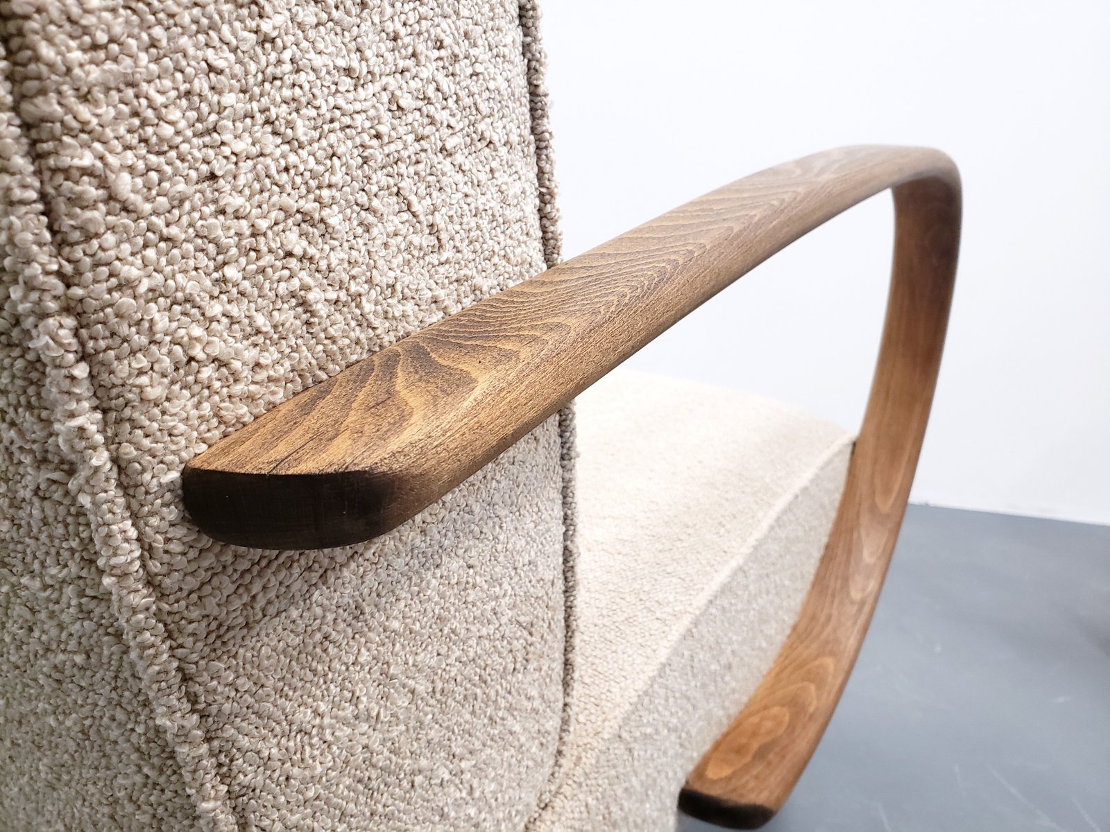 Altri design di Halabala includono la poltrona H-269 (all'inizio degli anni '30) - probabilmente il più famoso design ceco, facile da riconoscere per i suoi esagerati braccioli curvi; il tavolino da caffè a ragno H-370 (anni '30); e la poltrona regolabile H-70 (anni '30), solo per nominarne alcuni. Come i suoi contemporanei scandinavi Alvar Aalto (1898-1976) e Bruno Mathsson (1907-1988), Halabala utilizza legno piegato nella maggior parte dei suoi design di sedie.
