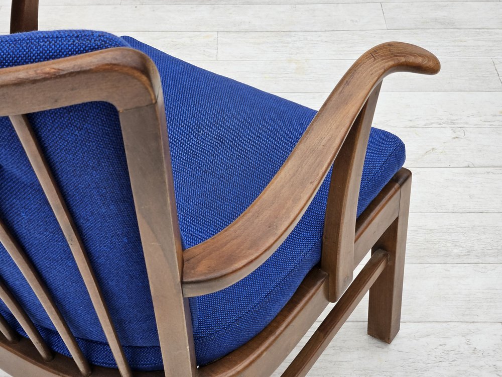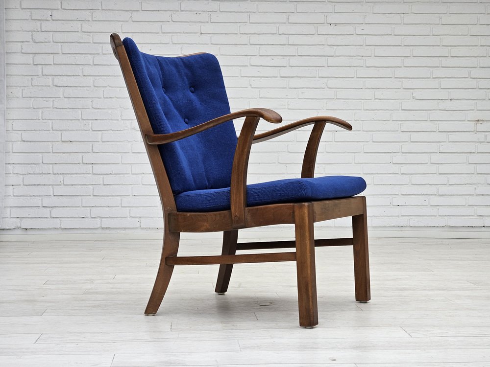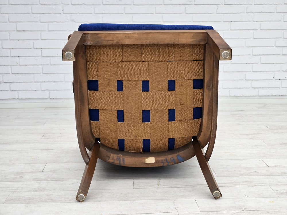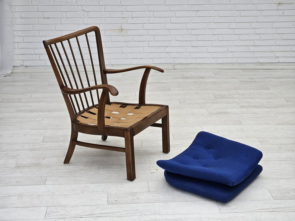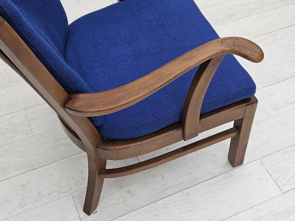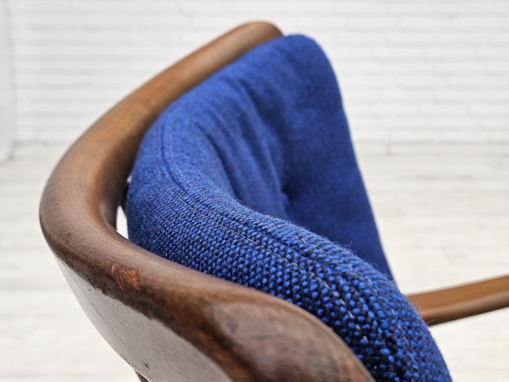 Poltrona in tessuto di lana e legno di quercia, Danimarca, anni '70