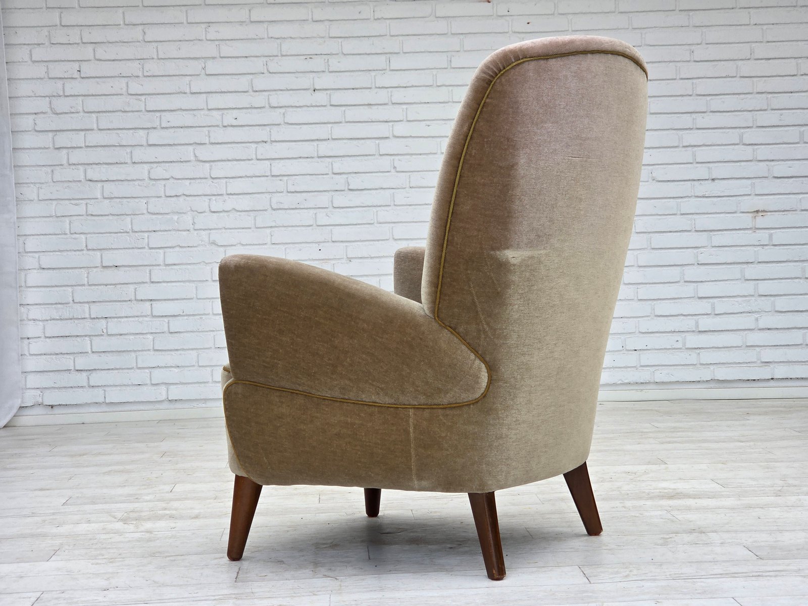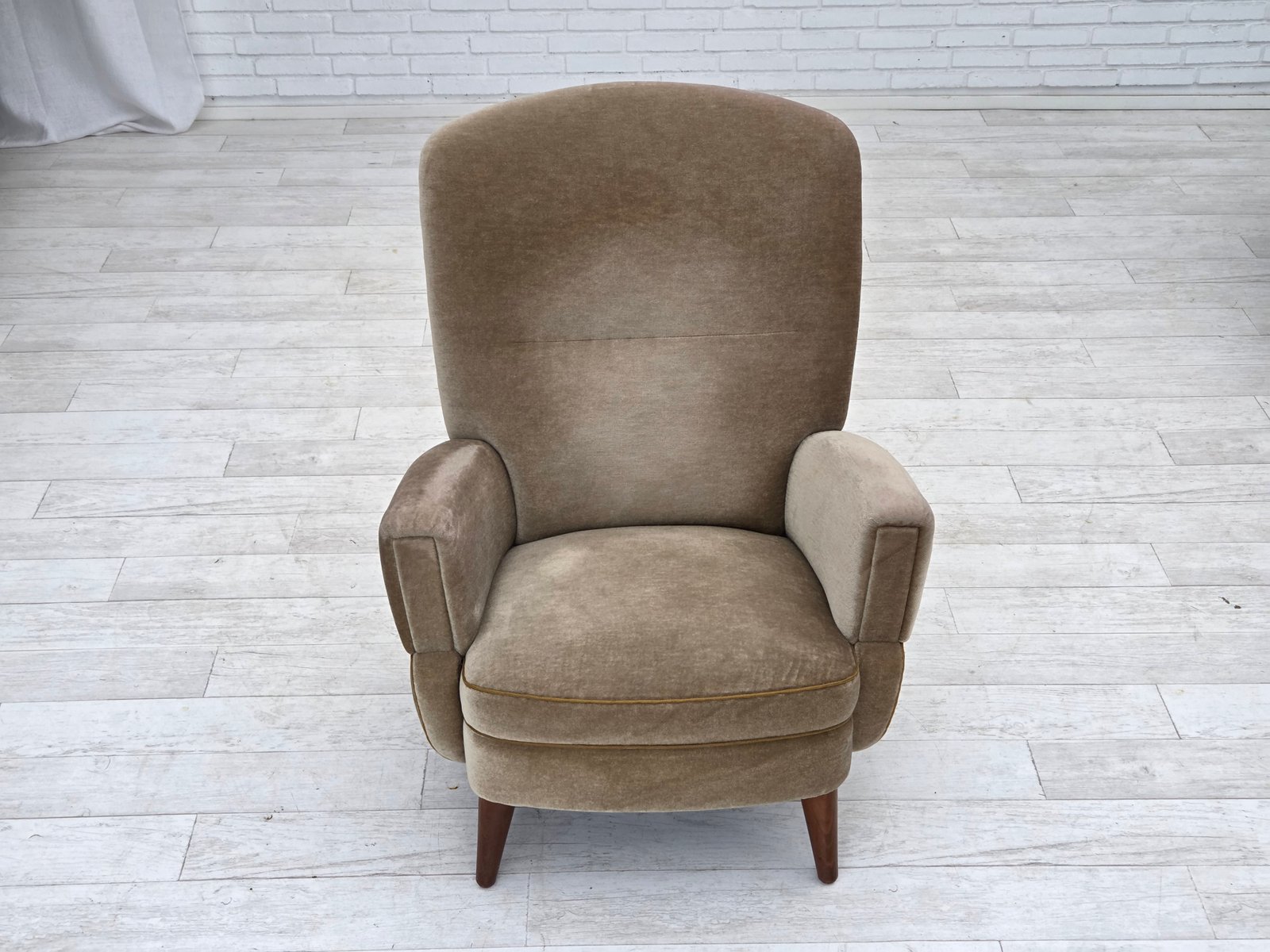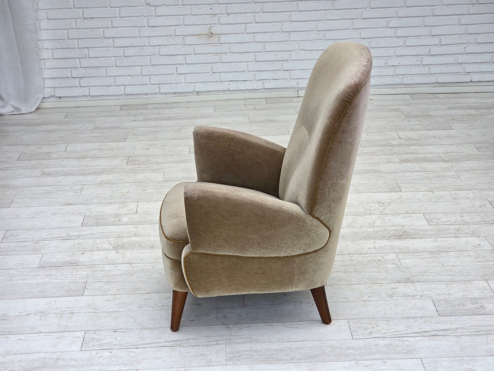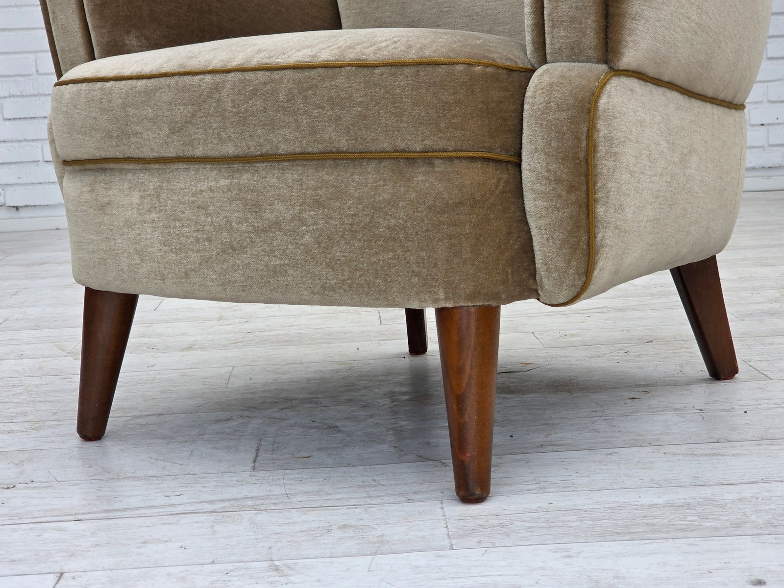 Poltrona in velluto verde e gambe in faggio, Danimarca, anni '70