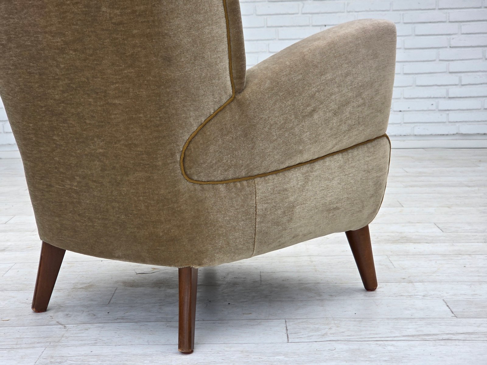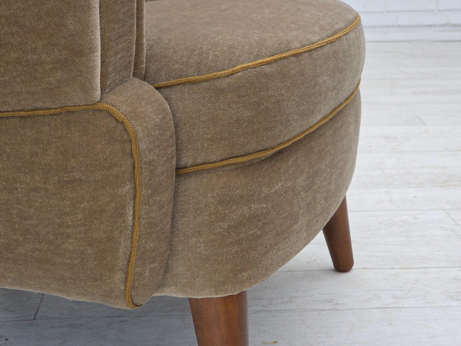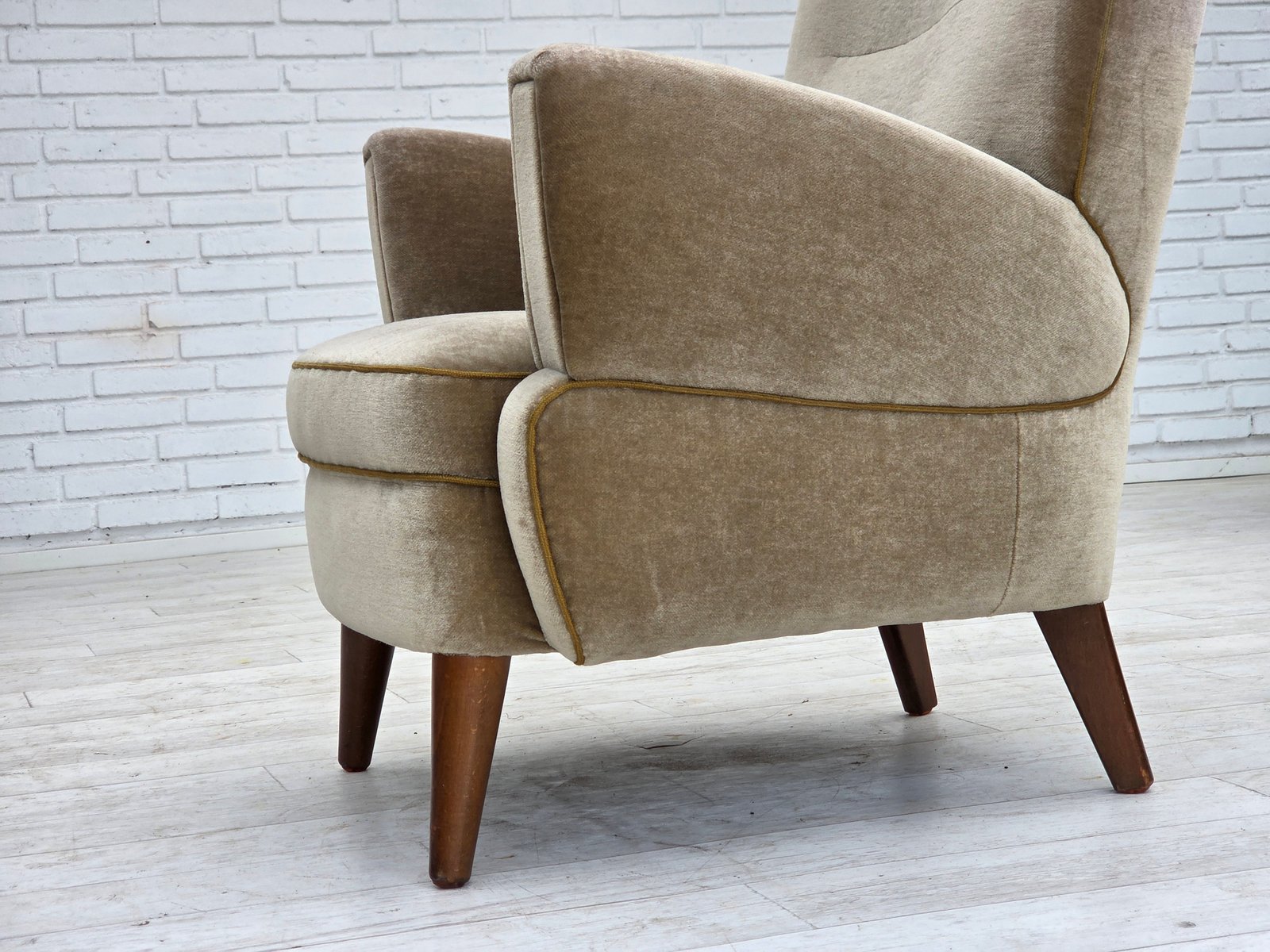 Poltrona in velluto verde e gambe in faggio, Danimarca, anni '70