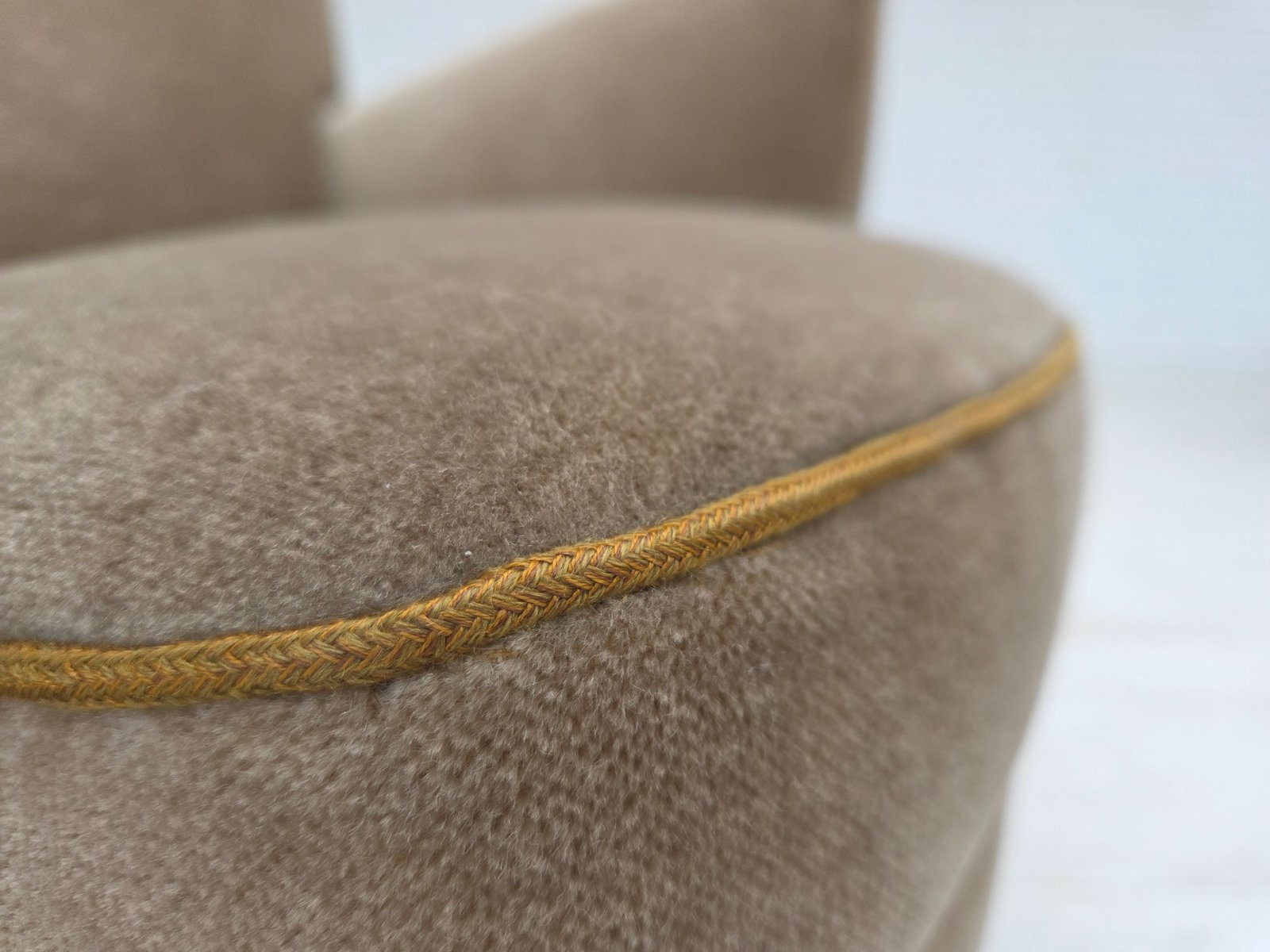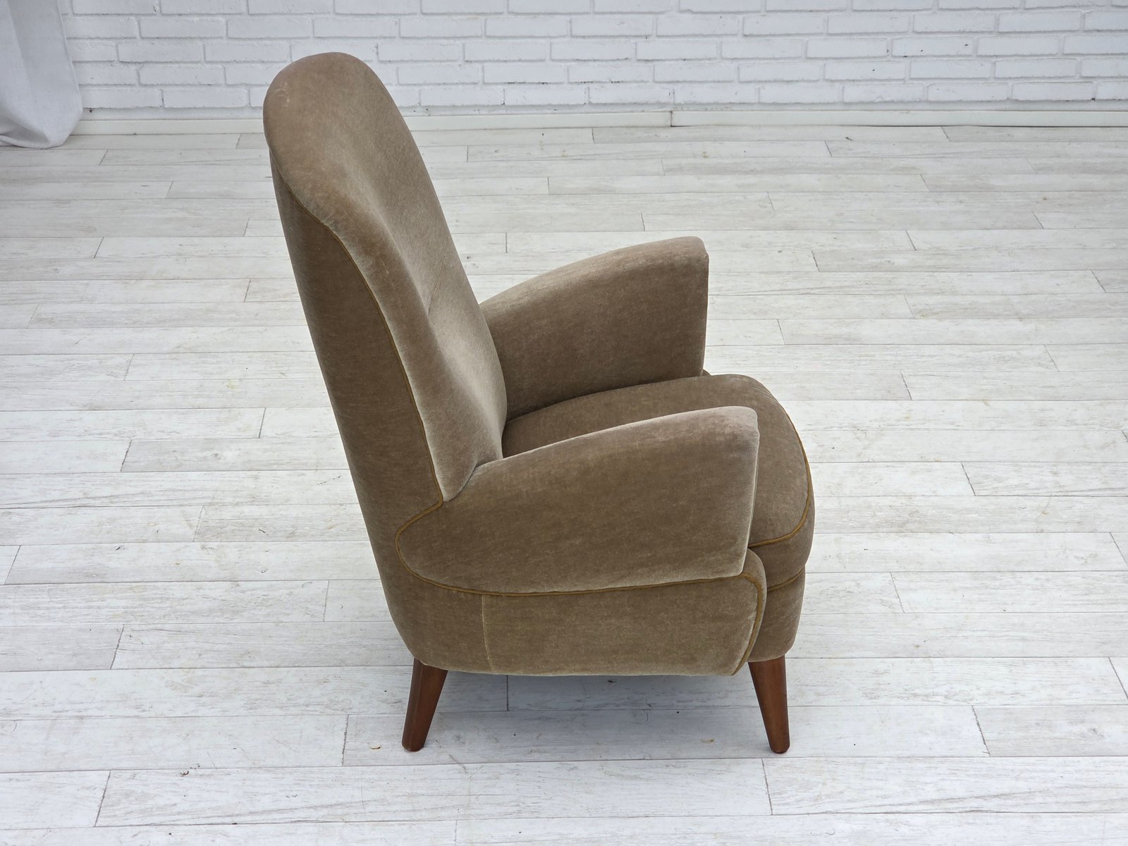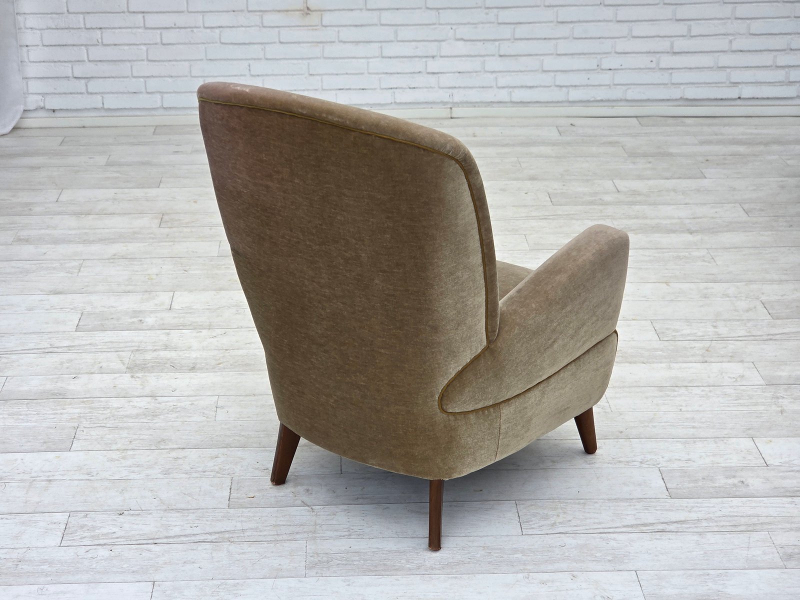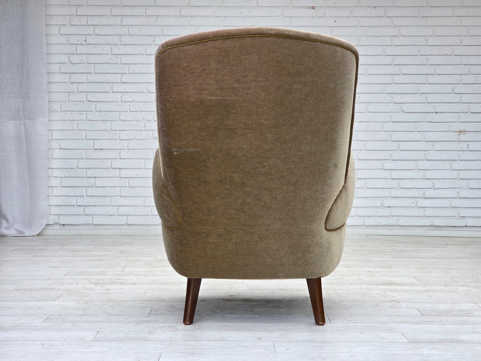 Poltrona in velluto verde e gambe in faggio, Danimarca, anni '70