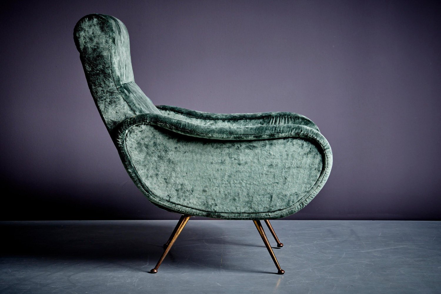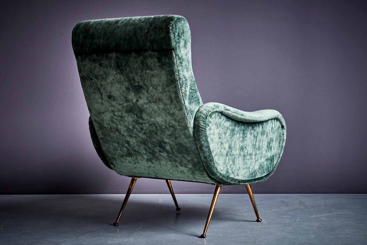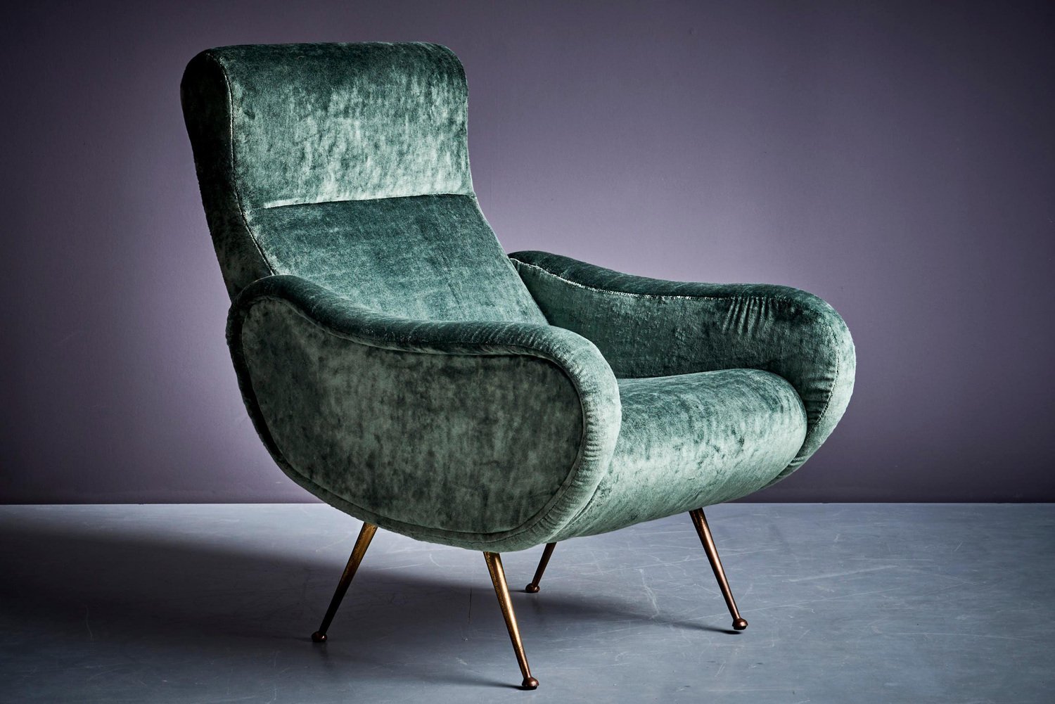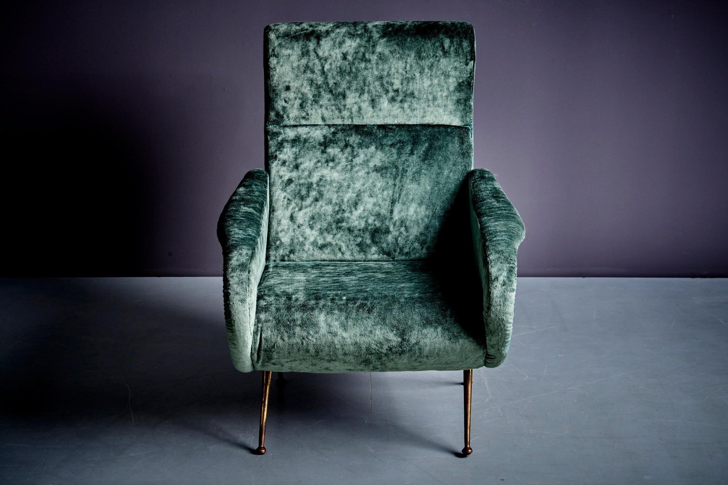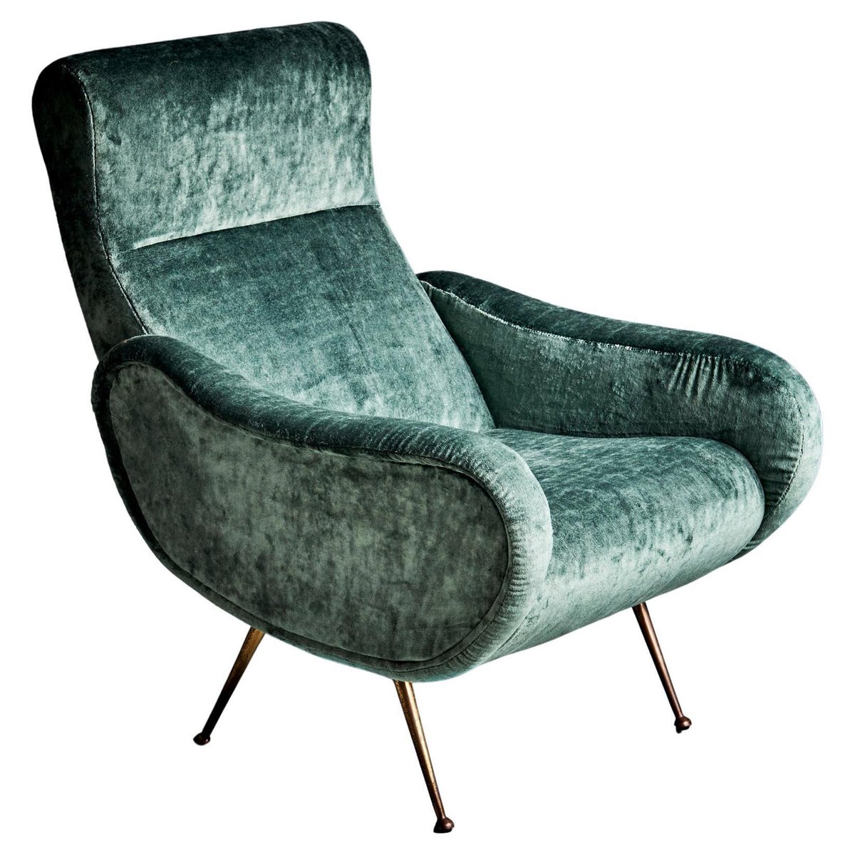 Poltrona in velluto verde nello stile di Marco Zanuso, anni '50