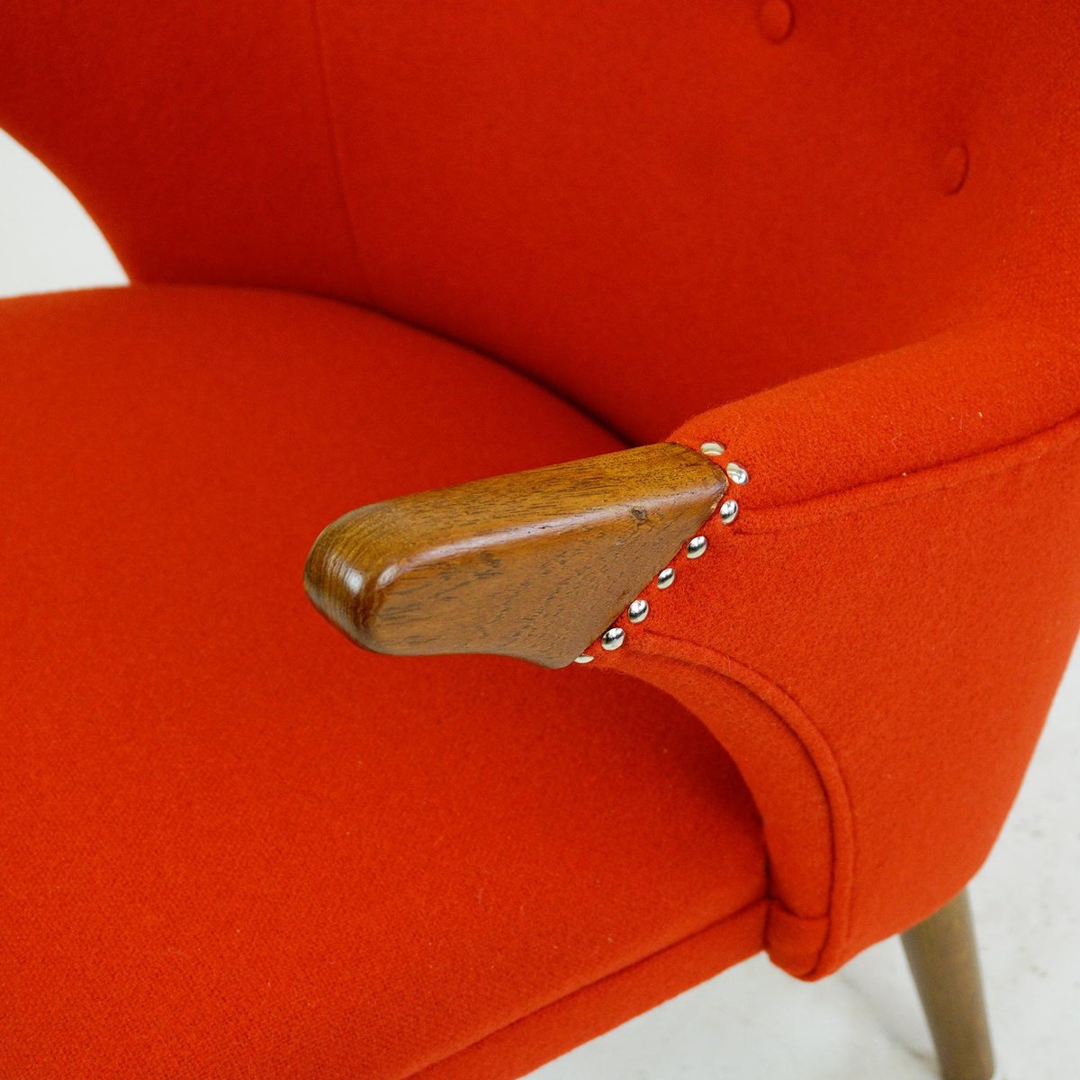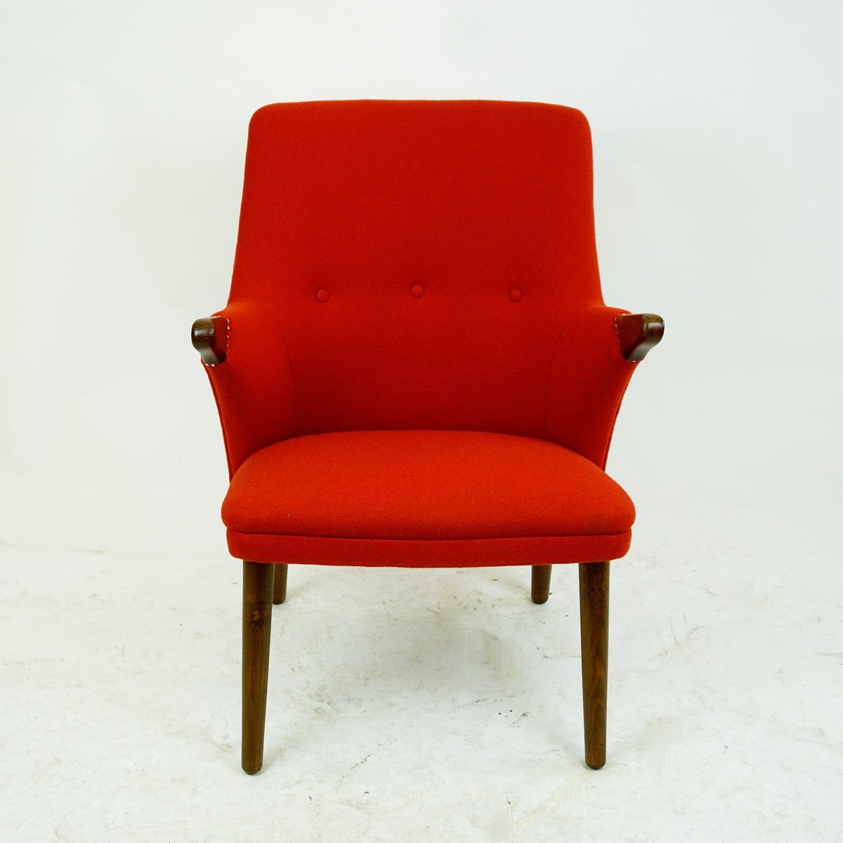 Poltrona Mini Bear in teak con tessuto rosso di Svend Skipper, Scandinavia