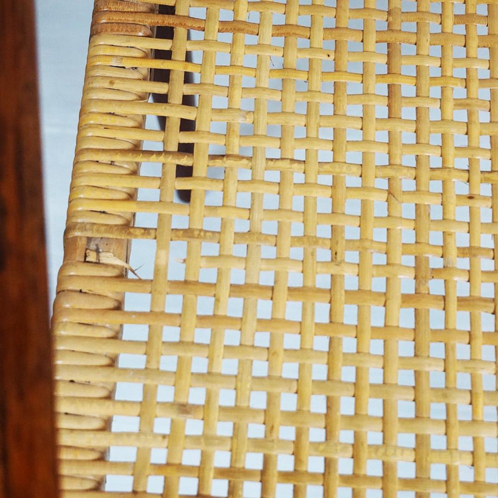 Questa bellissima e rara poltrona scandinava Modern Oak è stata disegnata da Nanna Ditzel per Kolds Savvaerk, in Danimarca. Questa poltrona modello 113, con la sua forma elegante ed ergonomica, è immediatamente riconoscibile come danese di metà secolo. Come la maggior parte dei progetti di Ditzel, come la sua iconica "Egg Chair" (1959 circa), la sedia Model 113 si basa su una forma circolare, come dimostra la profonda curvatura dello schienale. Questa curva aggraziata si contrappone alla forma quadrata e affusolata delle gambe e il rovere liscio ammorbidisce questa giustapposizione; il risultato è una struttura equilibrata e pulita. La seduta in canna multicolore, delicatamente intrecciata a mano, compensa perfettamente la ricchezza profonda della struttura in rovere massiccio. Il leggero arco della seduta si sposa con le curve della struttura, rendendo la sedia coesa e confortevole. Questa delicata sedia, con il suo uso di materiali pregiati e la sua sottile eleganza, mette in mostra tutte le migliori qualità del design danese del Mid-Century Modern. Questa poltrona Mod. 113 è in ottime condizioni originali, con qualche lieve usura dovuta all'età e una piccola perdita nella seduta in canna, si prega di dare un'occhiata alle foto!