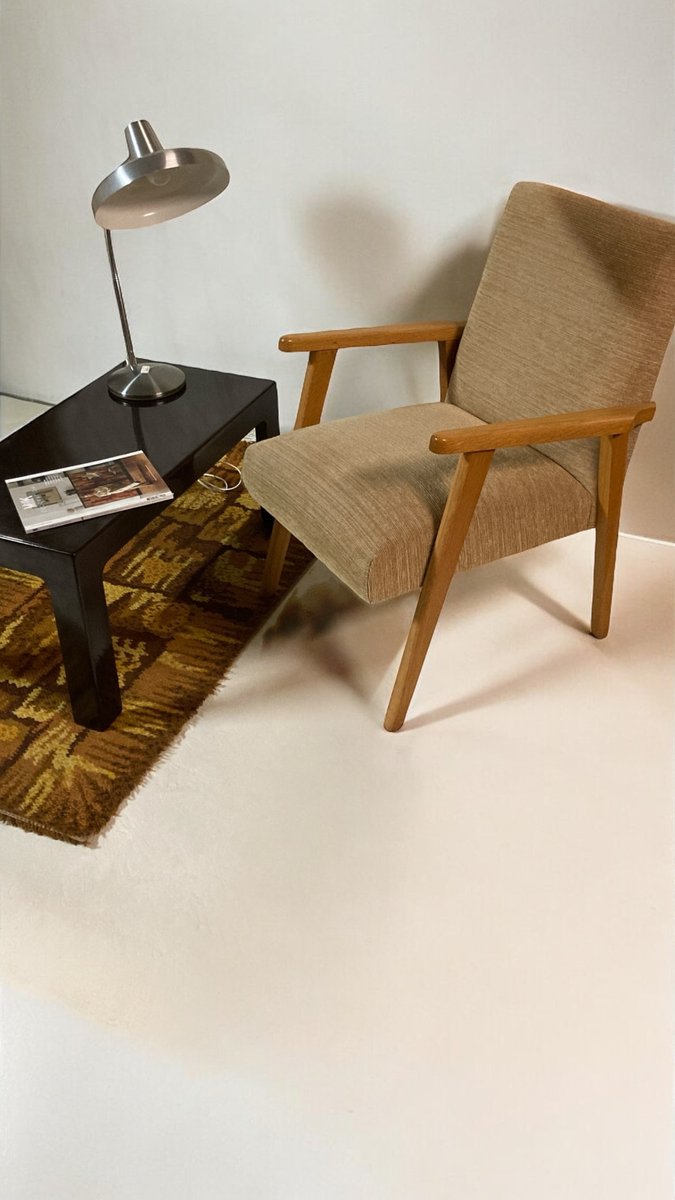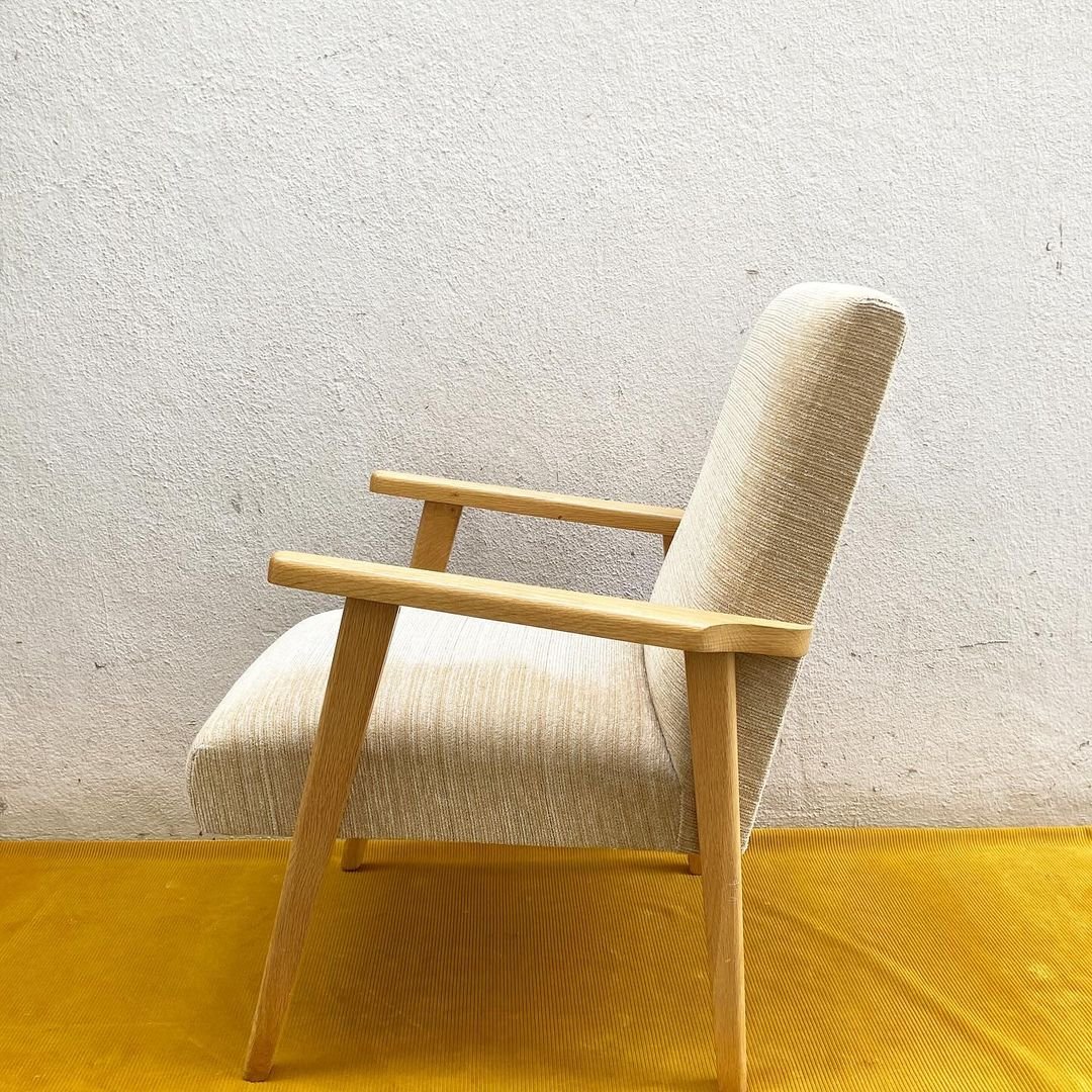 Poltrona scandinava in quercia bionda con tessuto screziato