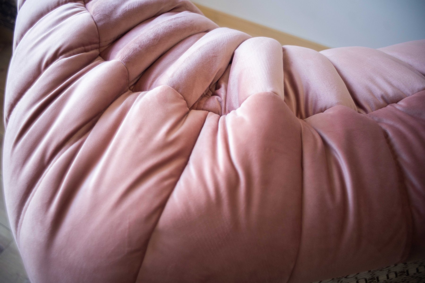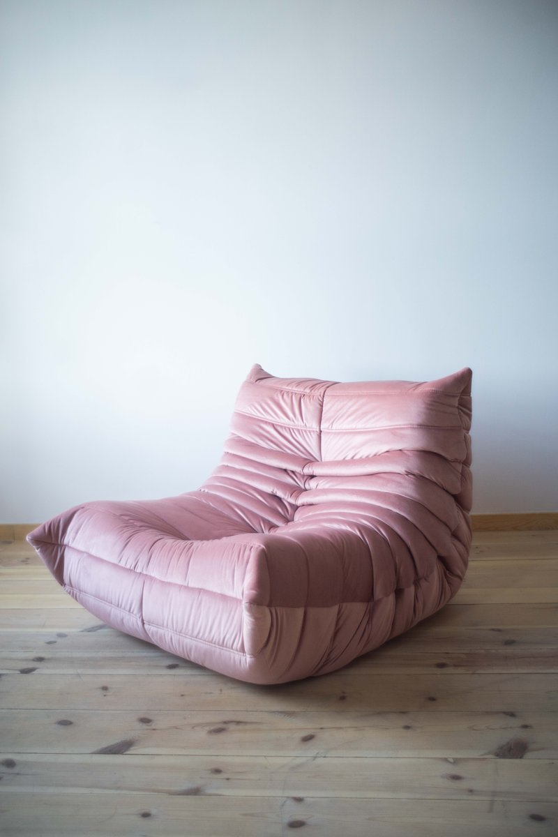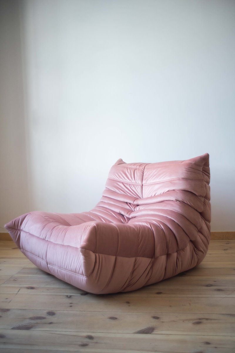 Poltrona Togo in velluto rosa perla attribuita a Michel Ducaroy per Ligne Roset