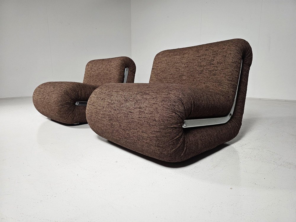 Poltrone Boomerang in lana marrone attribuite a Rodolfo Bonetto per Flexform, anni '60, set di 2