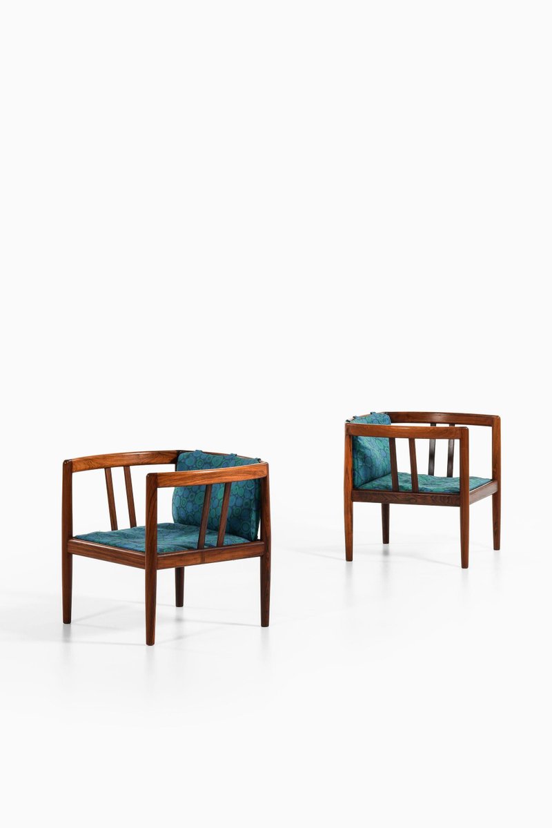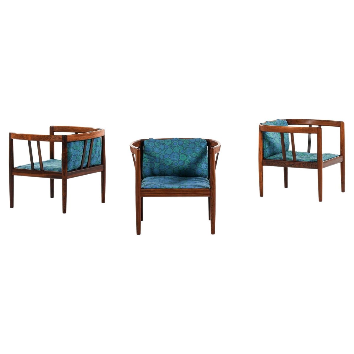 Poltrone in palissandro e tessuto originale attribuite a Illum Wikkelsø, 1964, set di 3