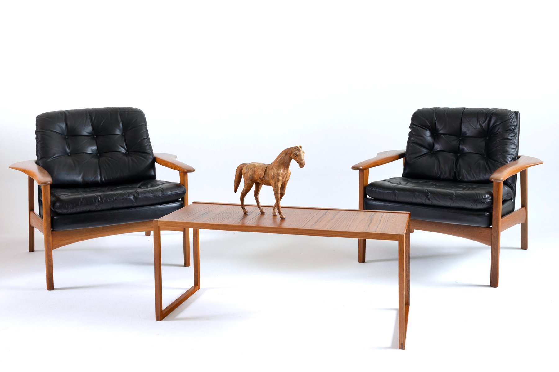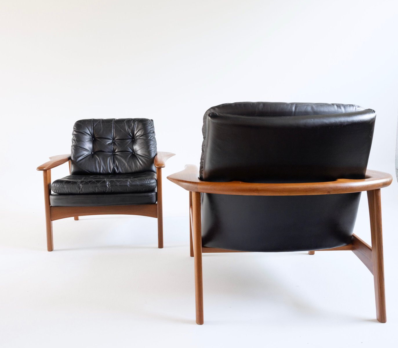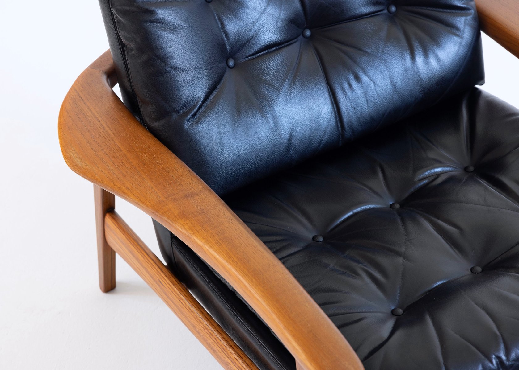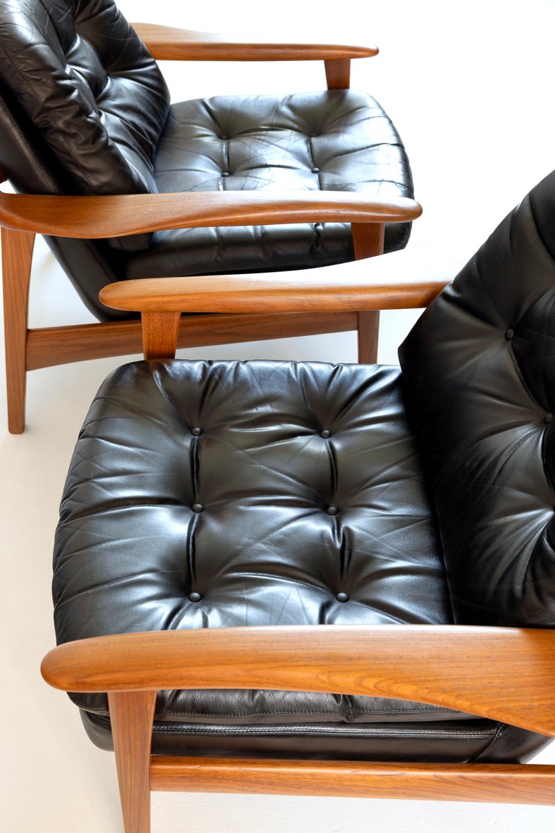 Poltrone in pelle con struttura in teak, anni '60, set di 2