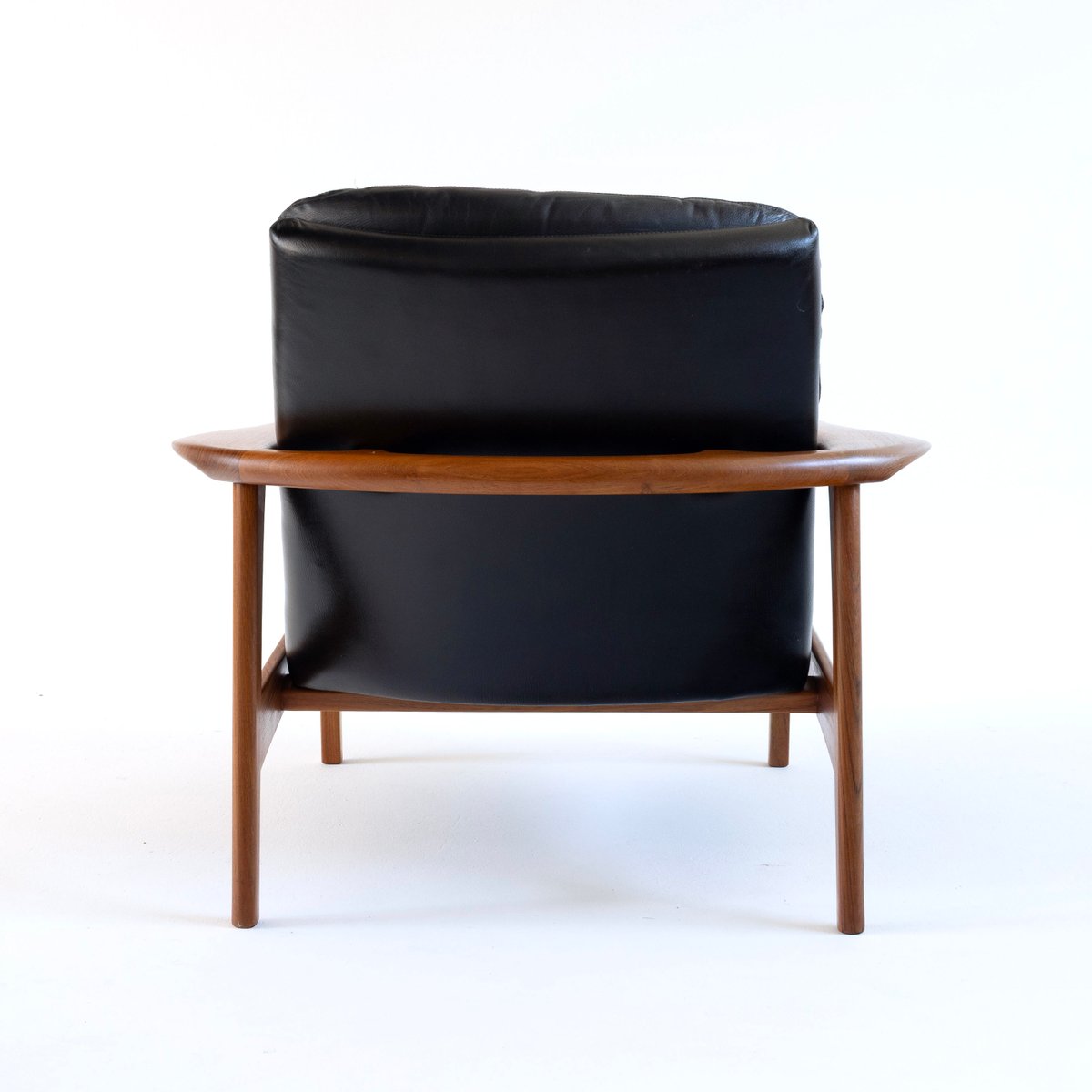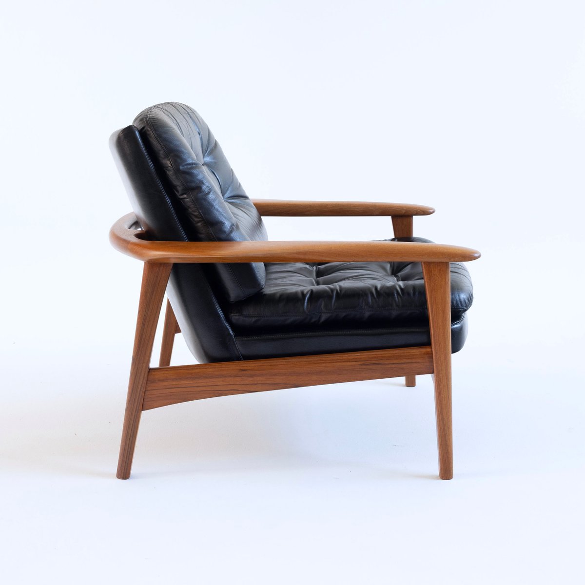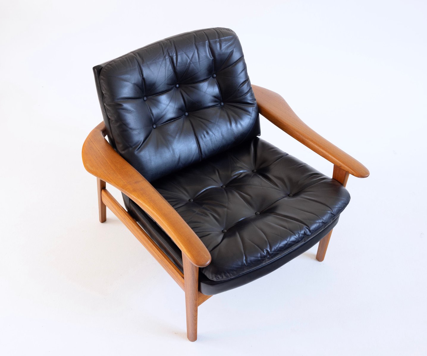 Poltrone in pelle con struttura in teak, anni '60, set di 2